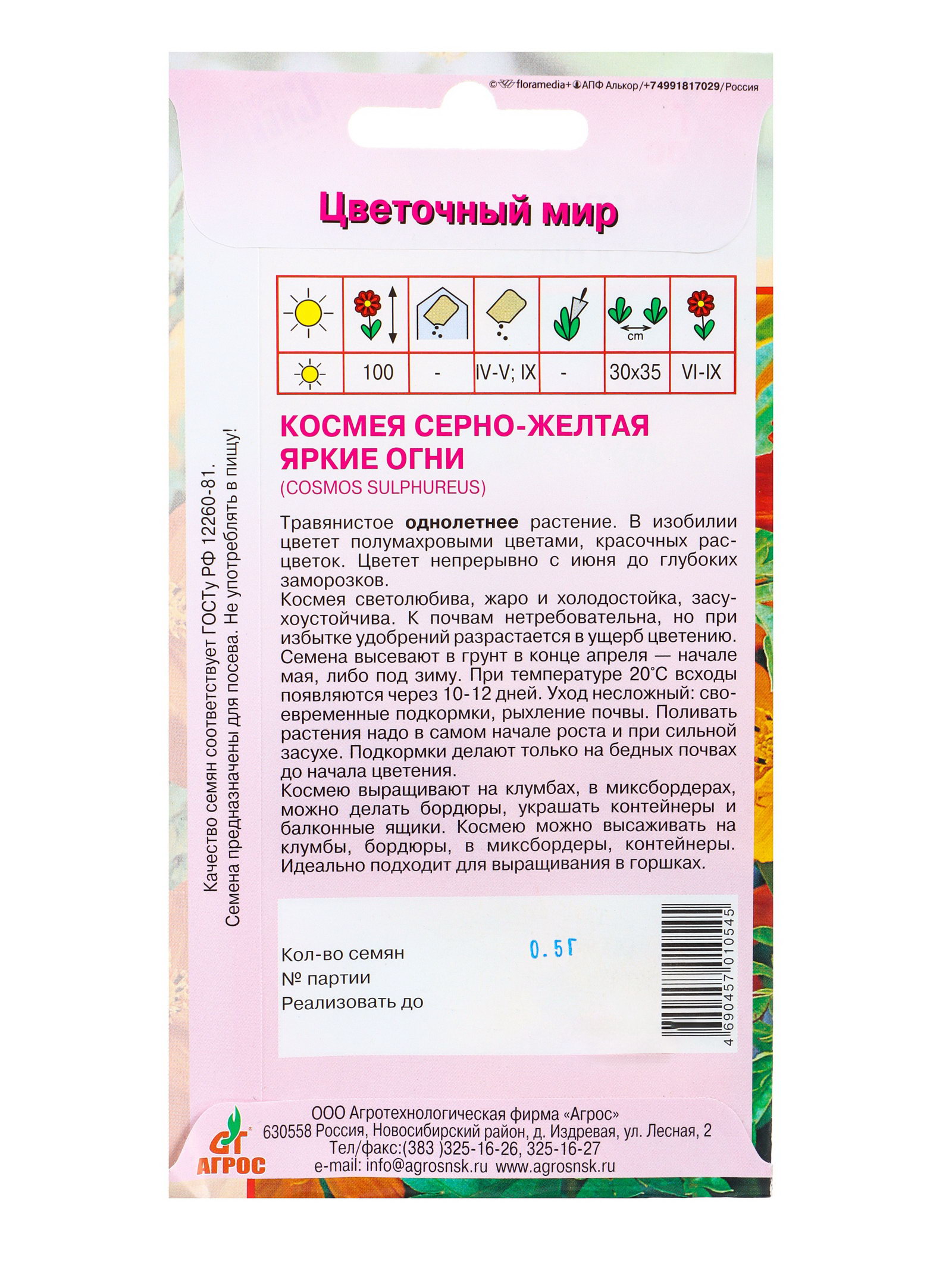 Семена Космея "Яркие огни", 0.5 г, "Агрос", Агросс, Германия