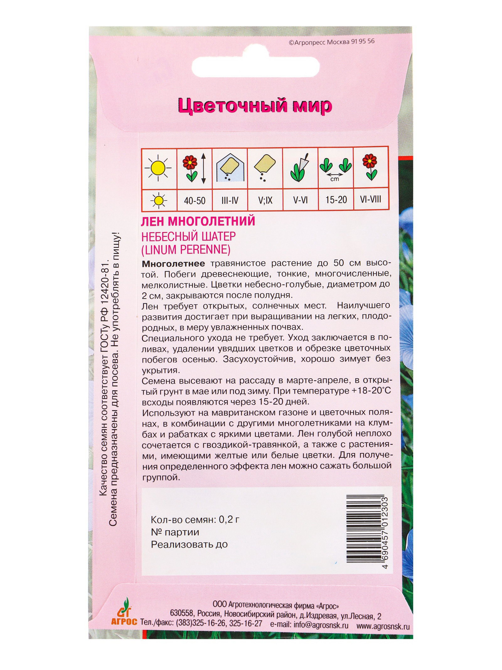 Семена Лен многолетний "Небесный Шатер" 0.2 г, Агросс, Россия