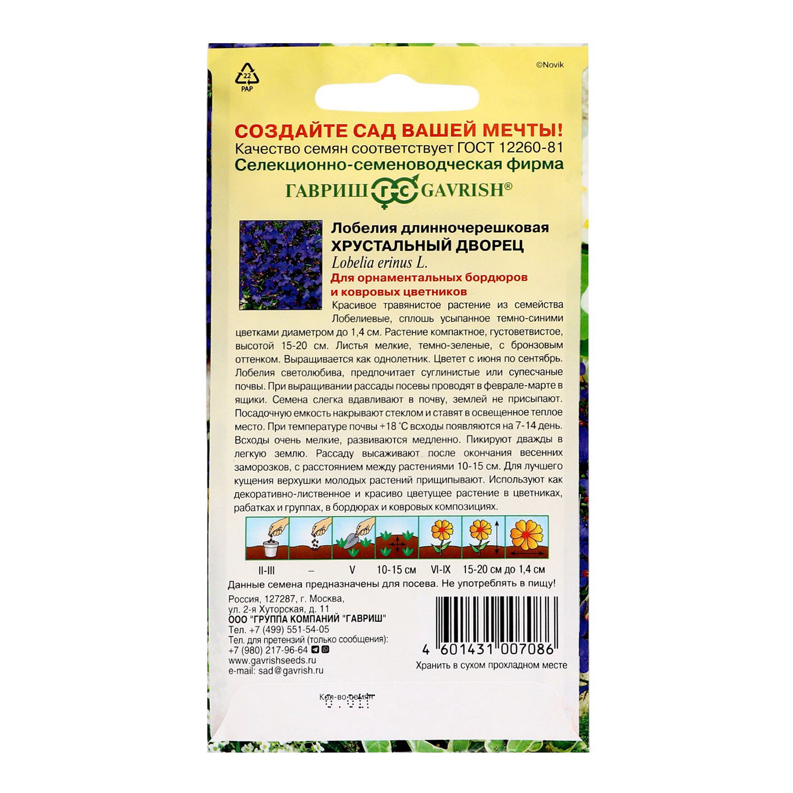 Семена цветов Лобелия "Хрустальный дворец", ц/п, 0.01 г, Гавриш, Россия