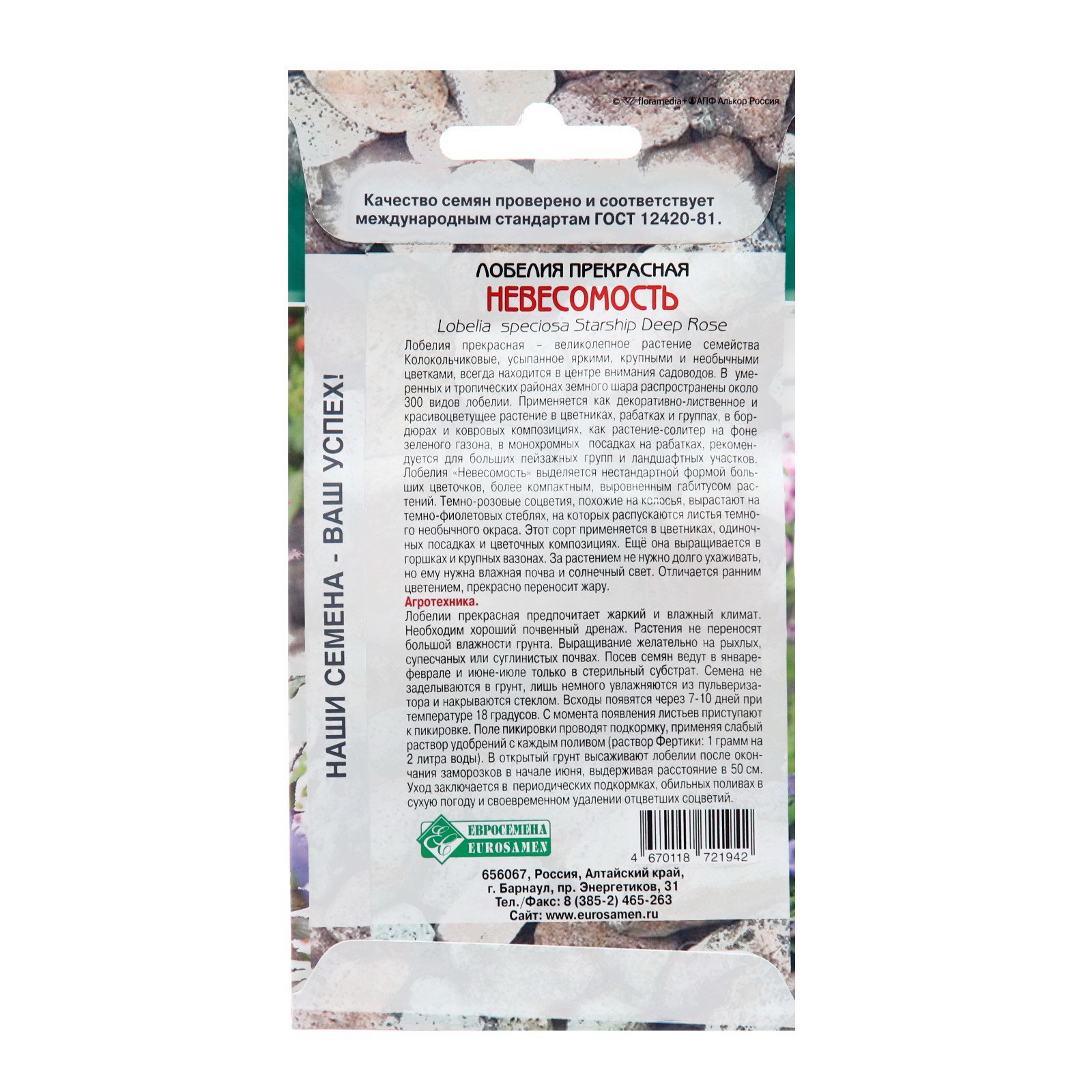 Семена лобелия прекрасная "Невесомость", 3 шт., Евросемена, Россия