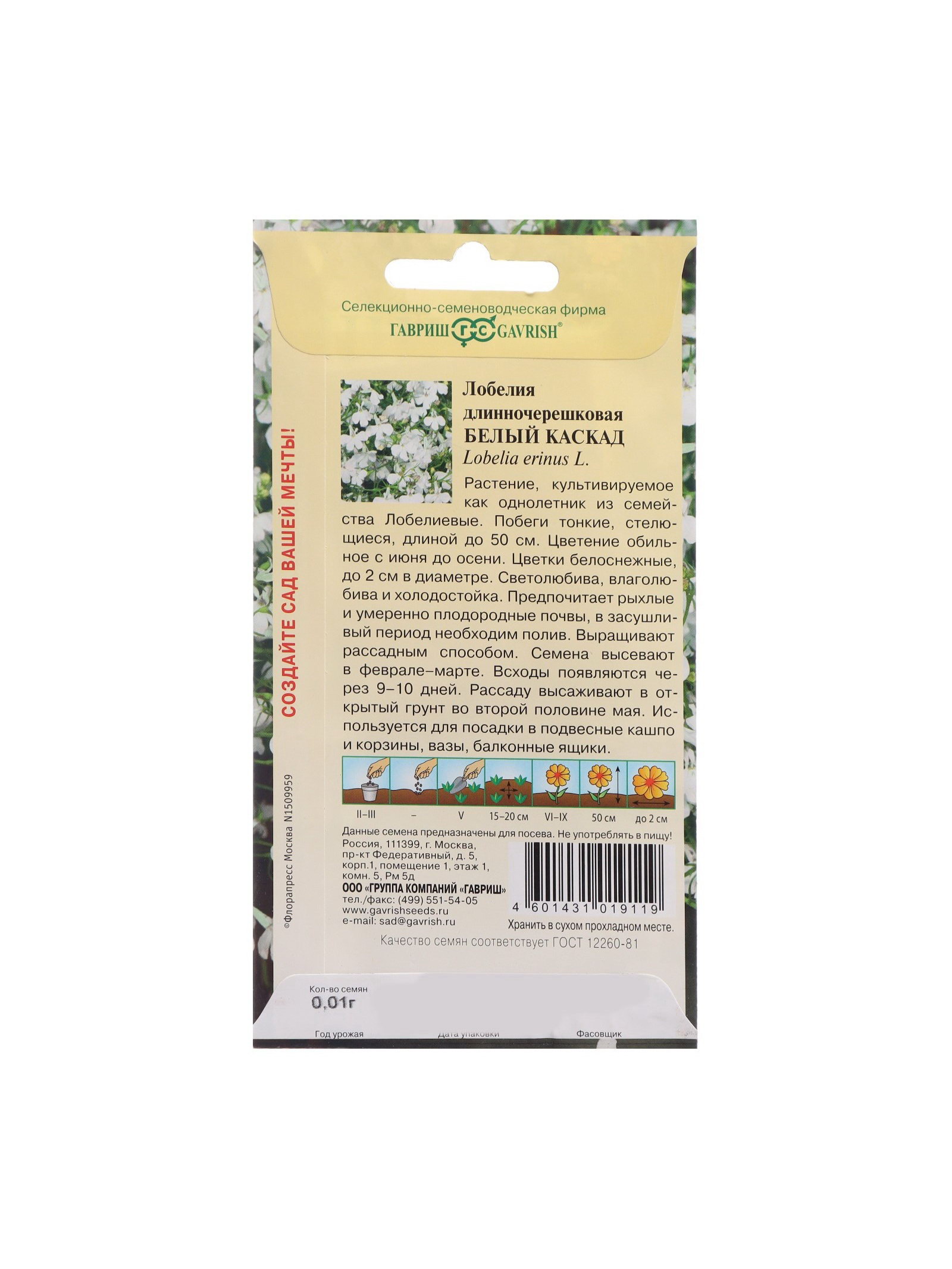 Набор семян Лобелия ампельная "Белый каскад", 5 шт., 9x17x1 см., Мой выбор, Россия
