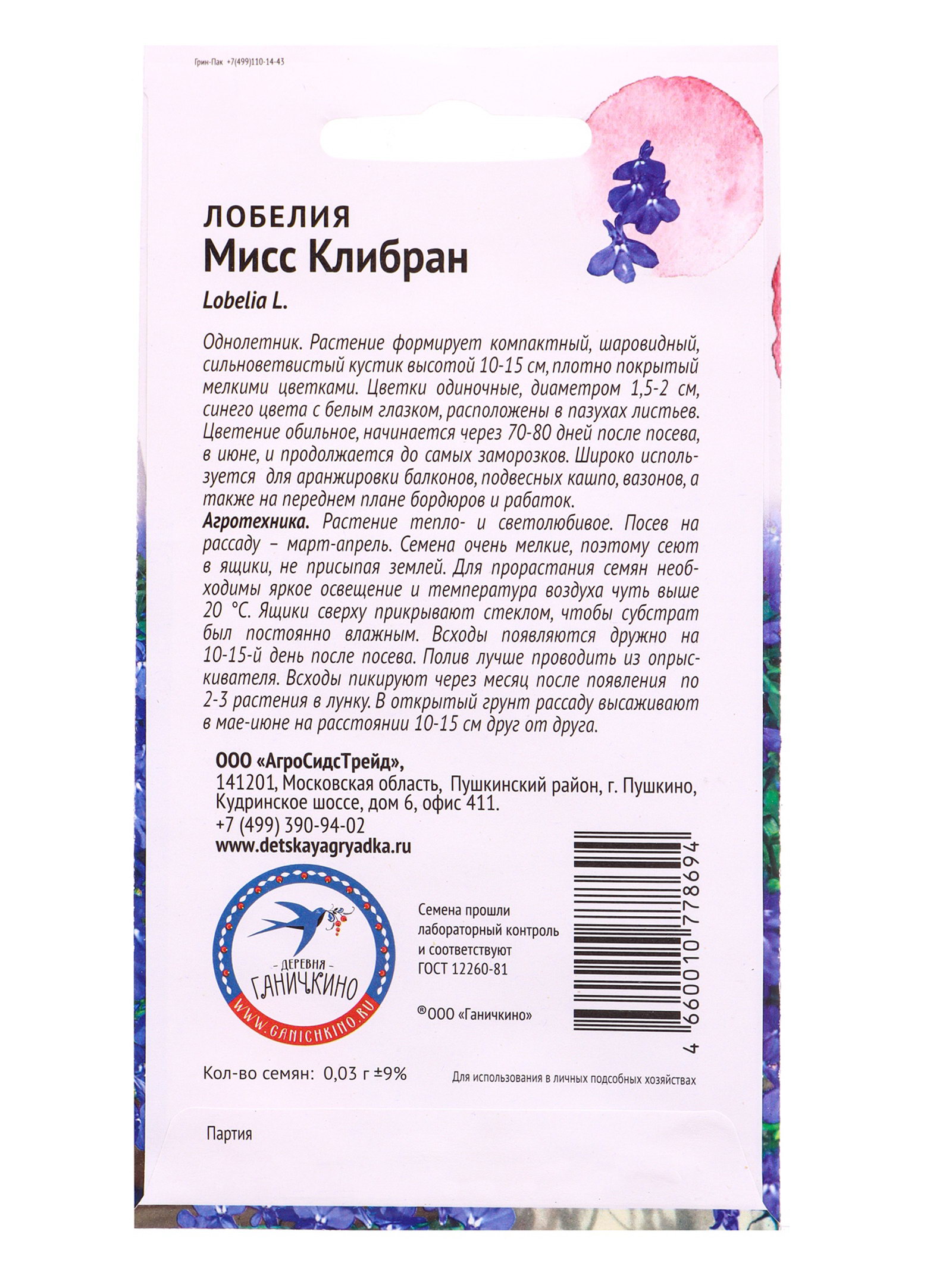 Семена цветов Лобелия Мисс Клибран 0.03 г, Агросидстрейд, Китай