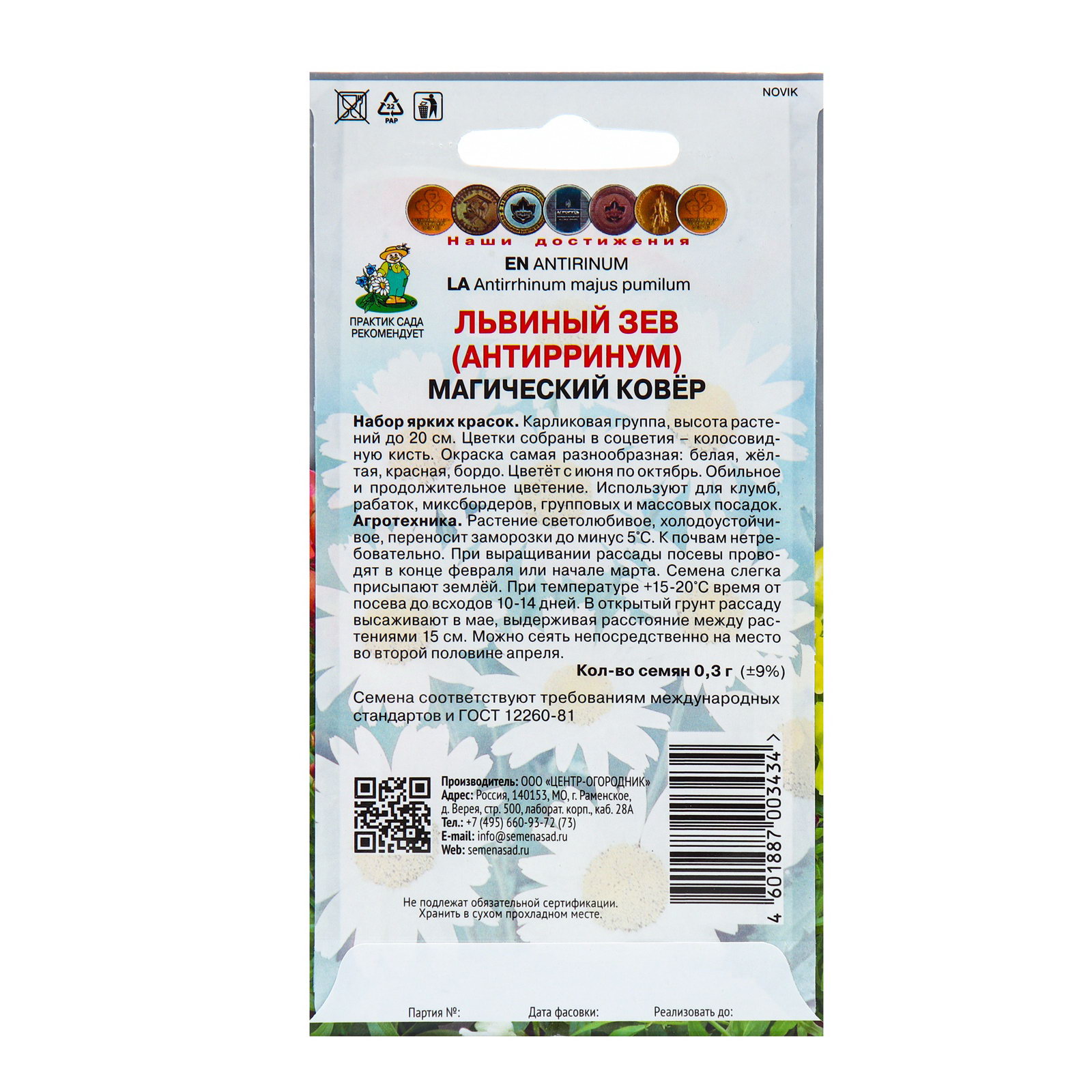 Семена цветов Львиный зев "Магический ковёр", 0.3гр., ПОИСК, Нидерланды