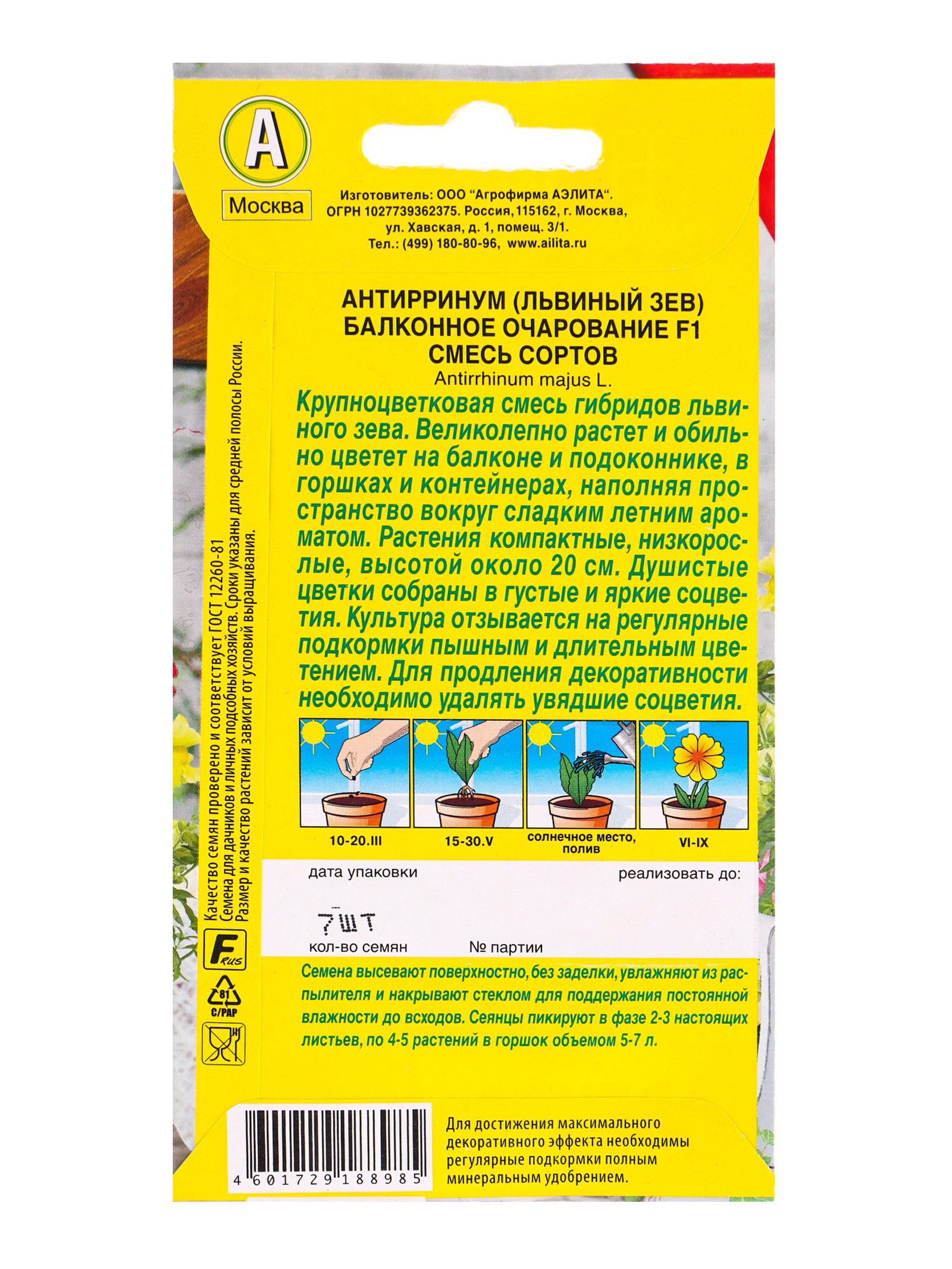 Семена цветов Львиный зев Балконное очарование F1, смесь сортов Цветущий балкон, Ц/П,7 шт., Агрофирма АЭЛИТА, Гватемала