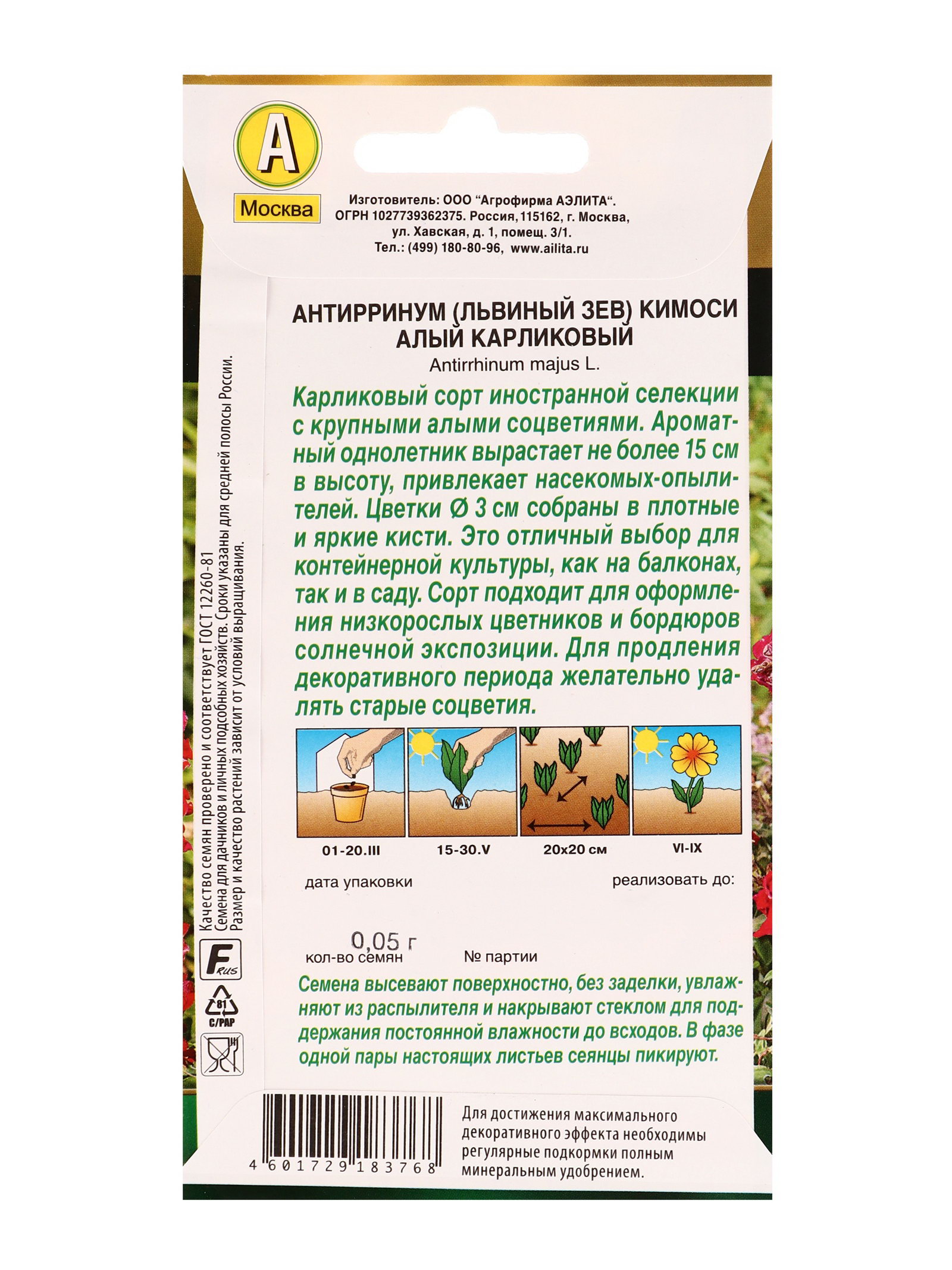 Семена цветов Львиный зев Кимоси алый карликовый Золотая серия, Ц/П,0.05 г, Агрофирма АЭЛИТА, Нидерланды