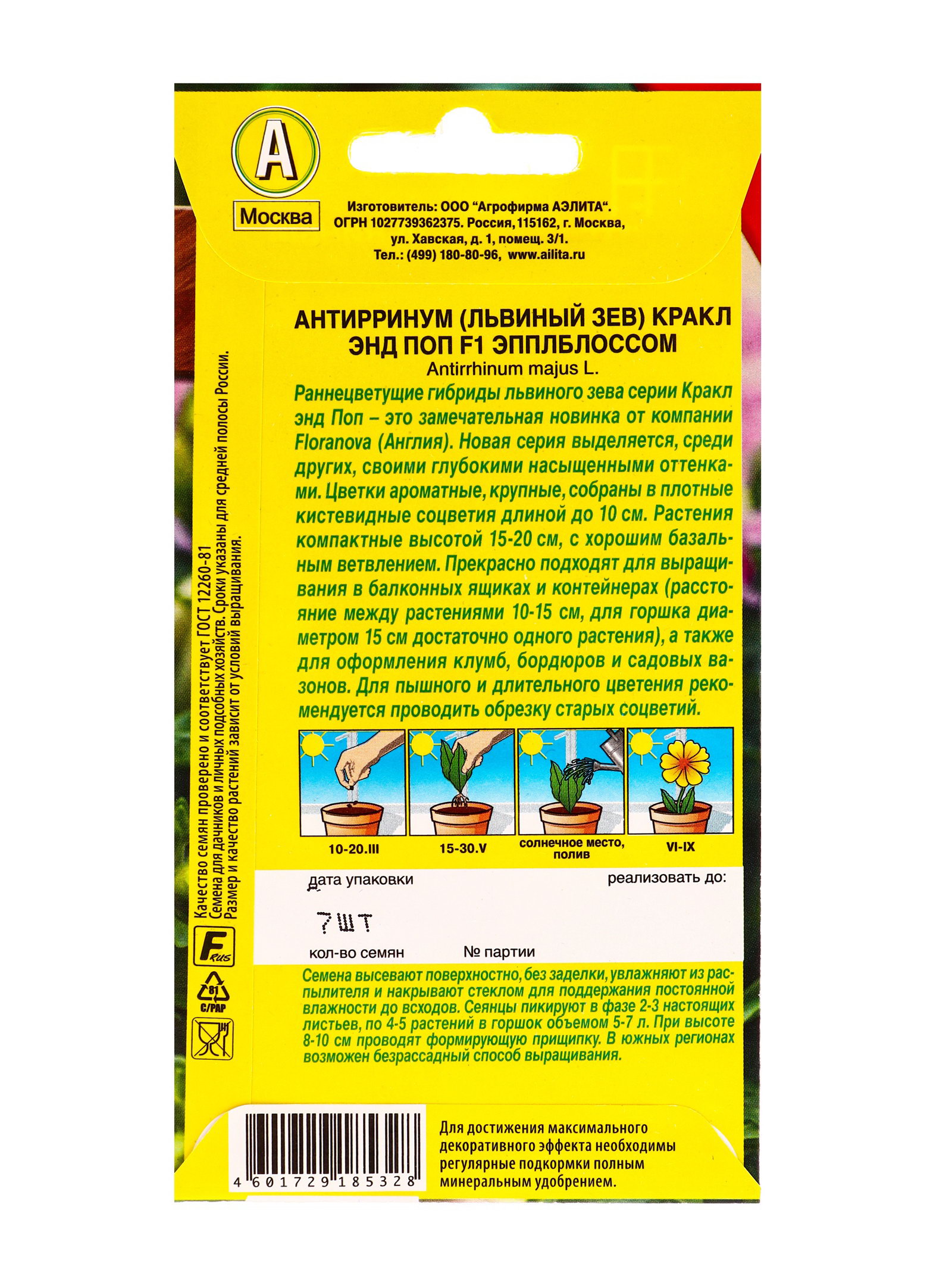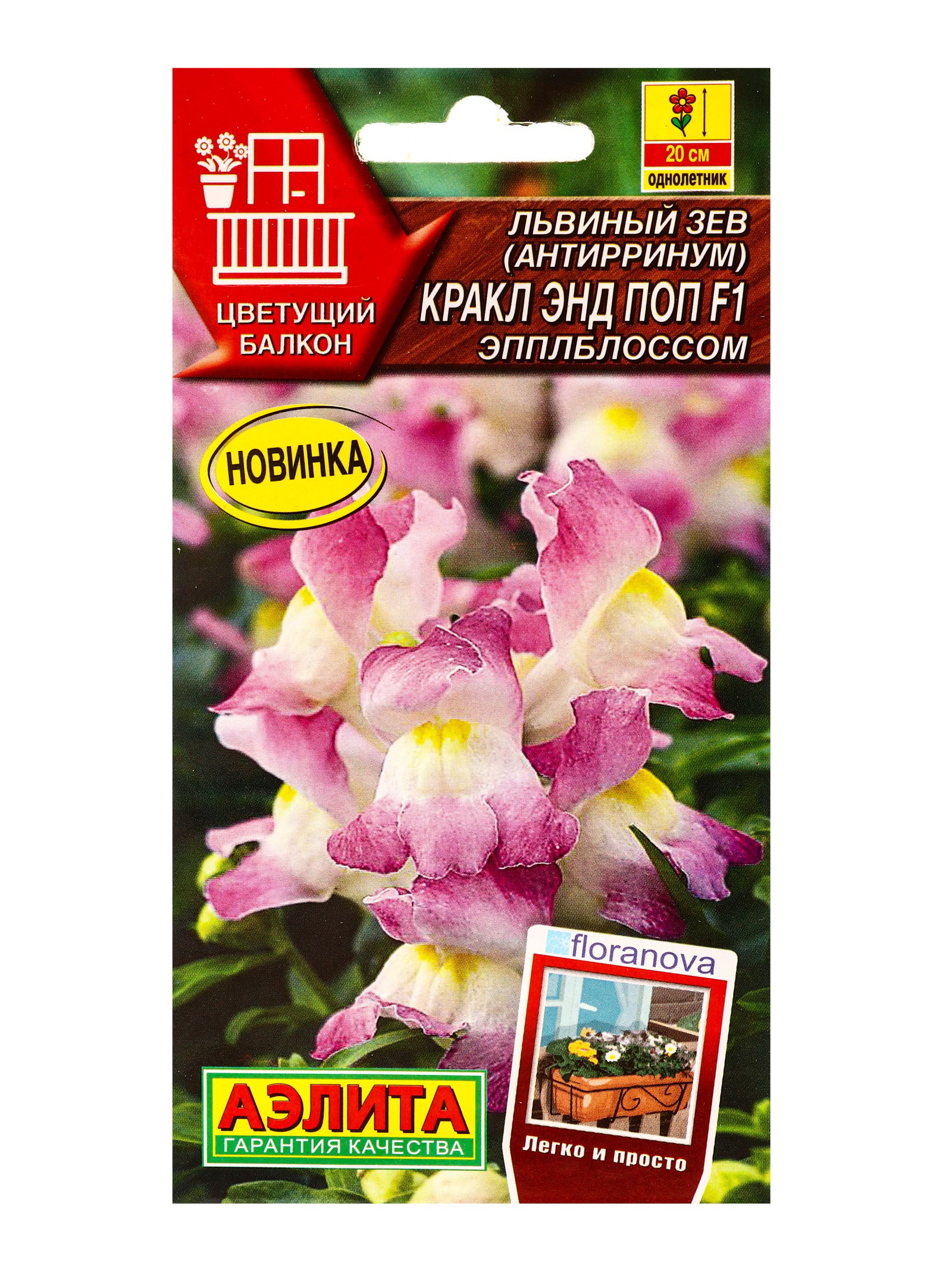 Семена цветов Львиный зев Кракл энд поп F1 эпплблоссом С. Floranova Цветущий балкон, Ц/П,7 шт. 1094, Агрофирма АЭЛИТА, Индонезия