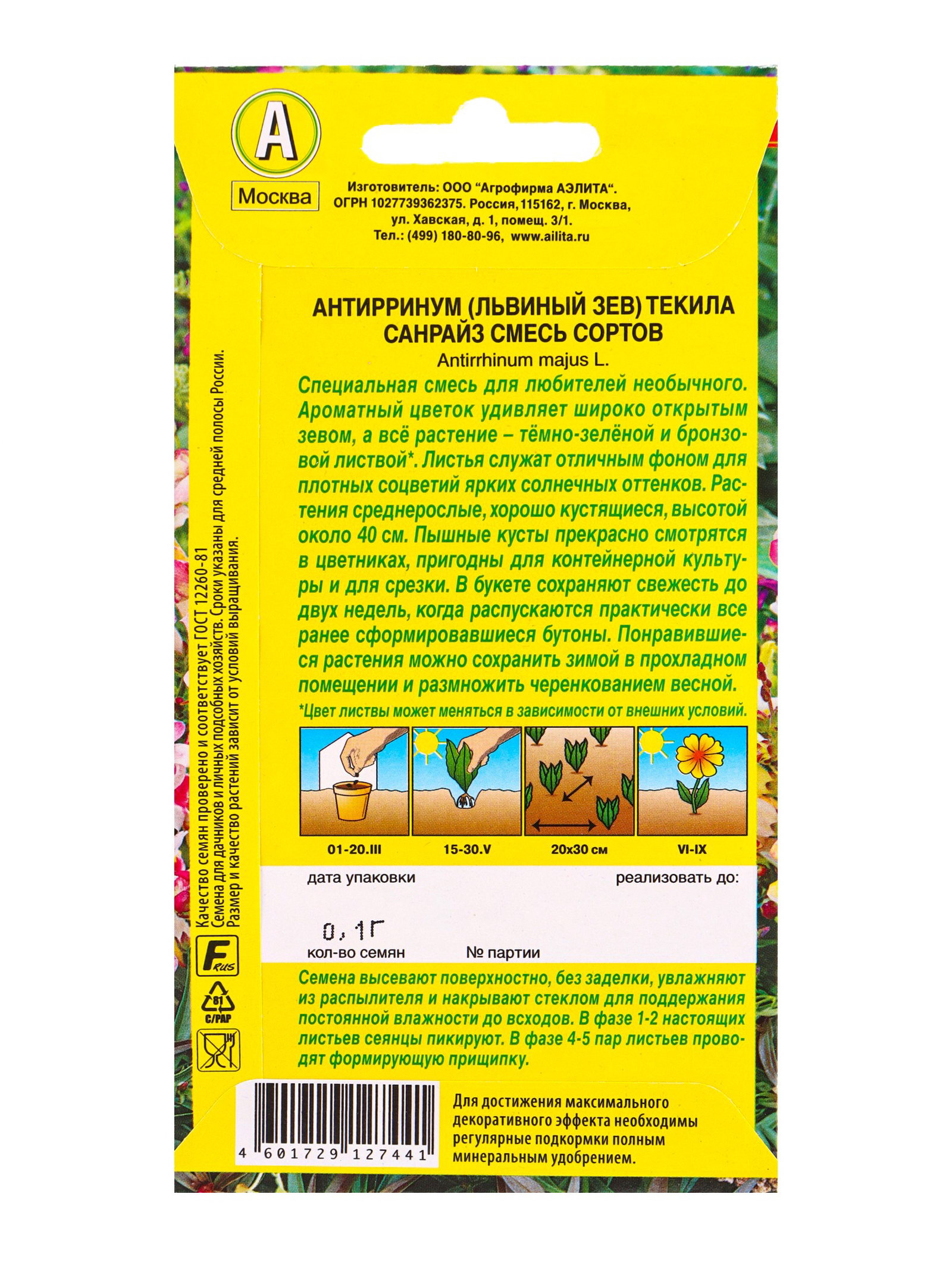 Семена цветов Львиный зев Текила санрайз, смесь окрасок, Ц/П,0.1 г, Агрофирма АЭЛИТА, Нидерланды