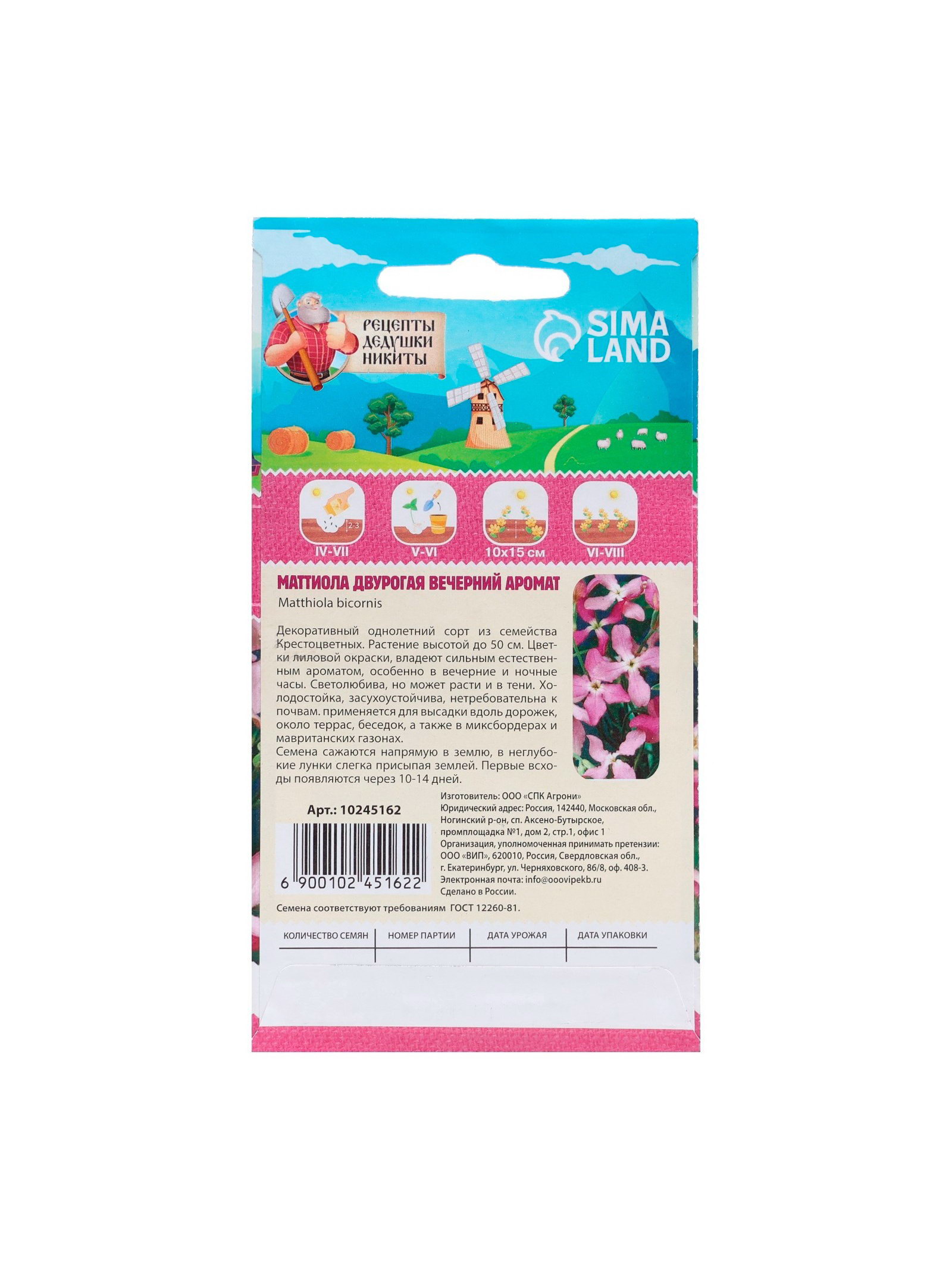 Семена цветов Маттиола двурогая "Вечерний аромат", смесь, 0.3 г, Рецепты дедушки Никиты, Россия