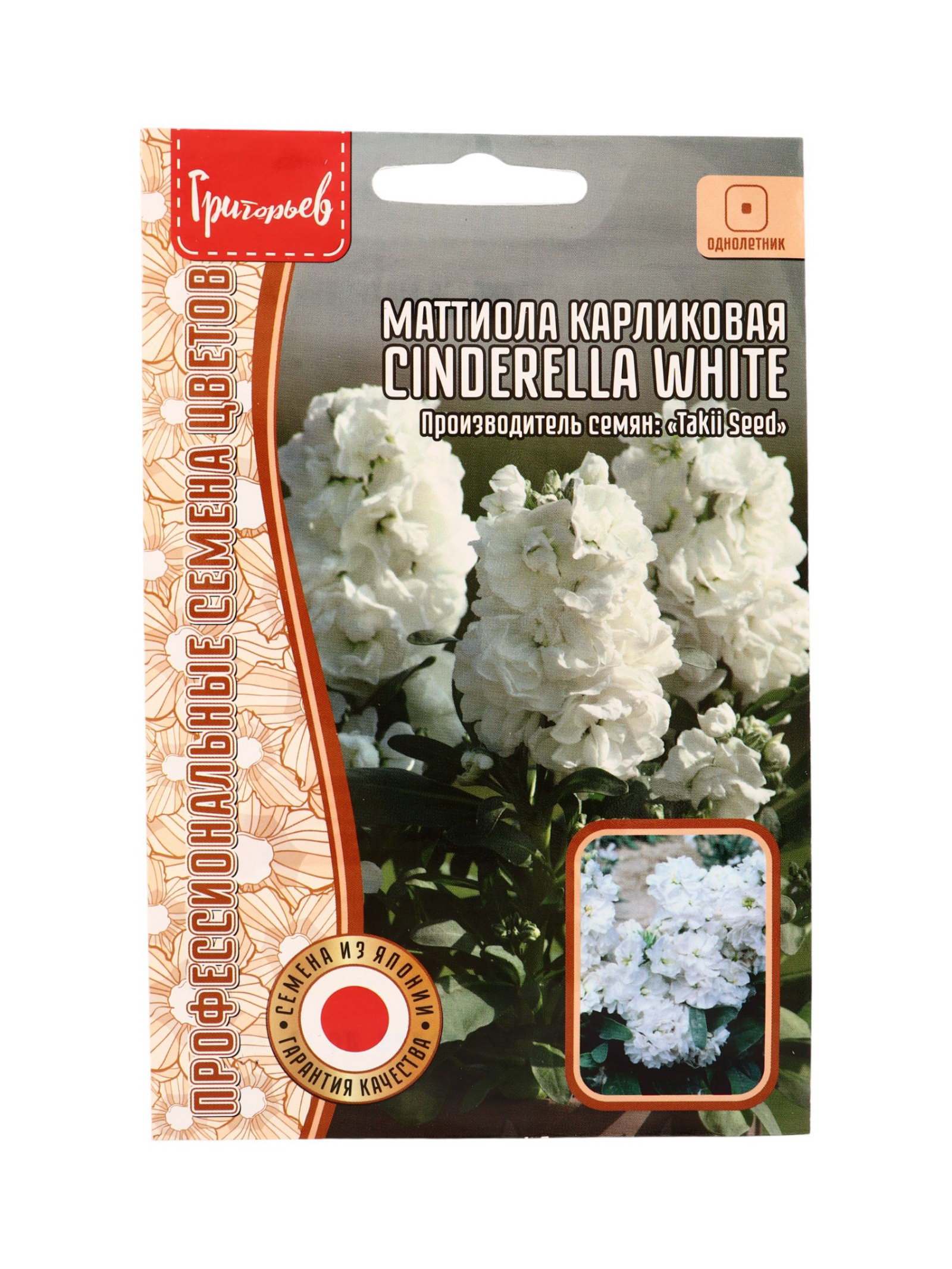 Семена цветов Маттиола Cinderella White карликовая 5 шт. 12.29 гр, Григорьев, Россия