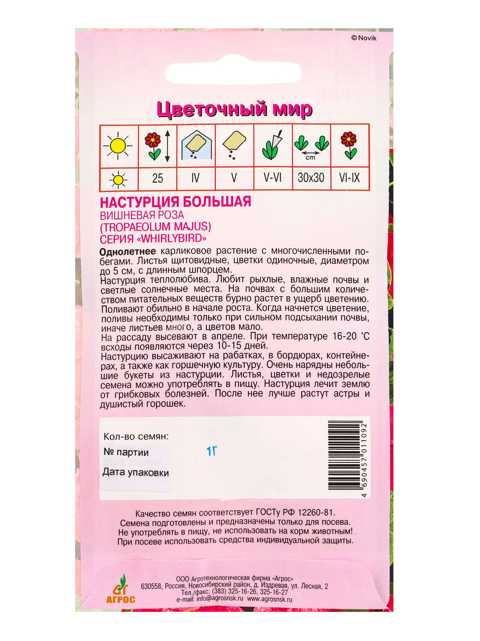 Семена Настурция Большая Вишневая роза 1 г, Агросс, Россия
