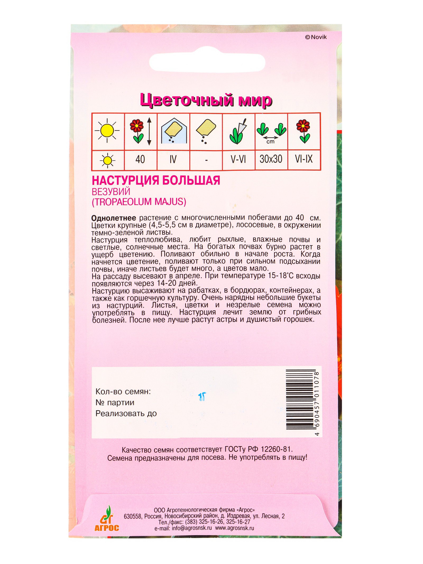 Семена Настурция Большая Везувий 1 г, Агросс, Россия