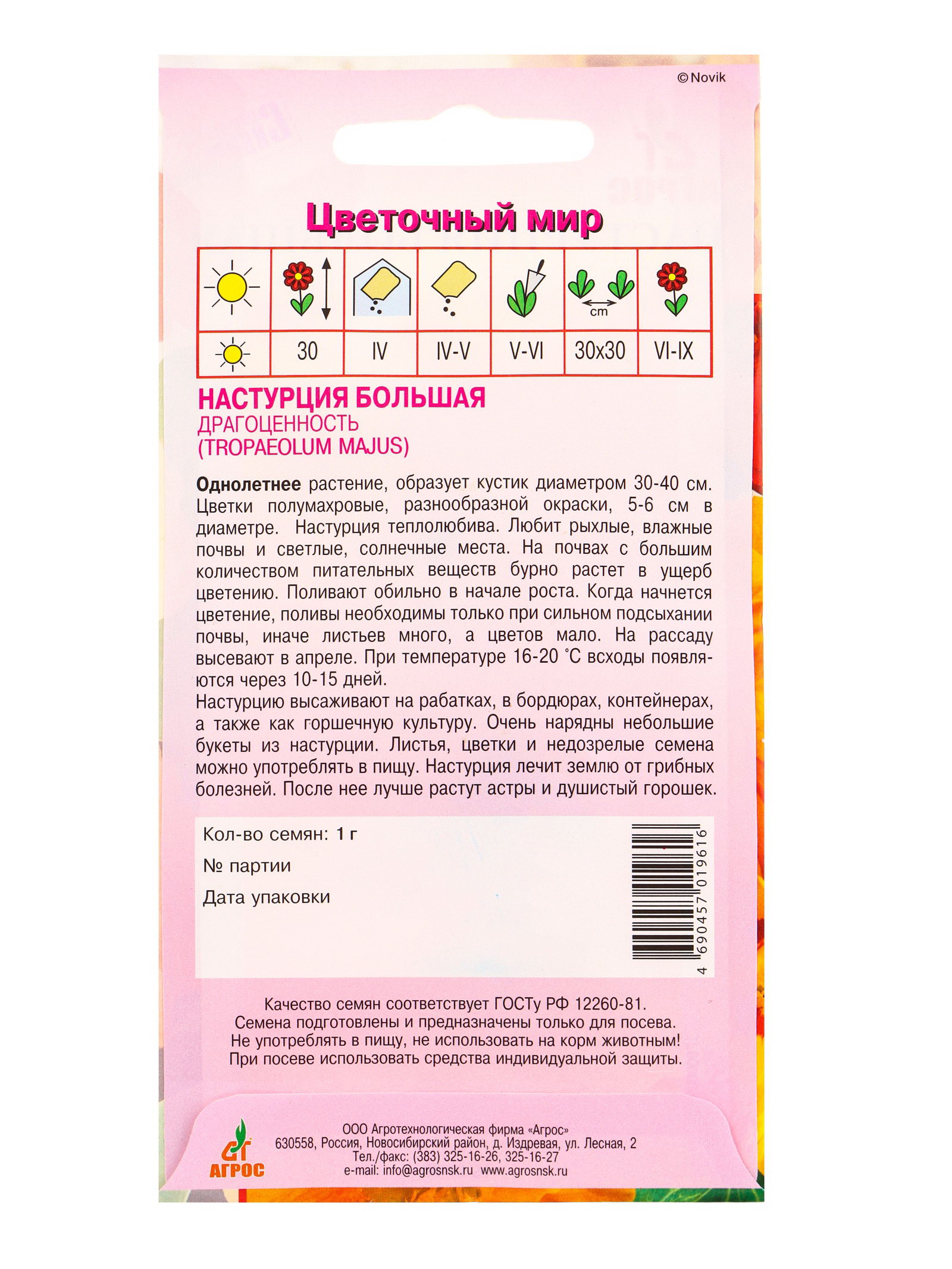 Семена Настурция Большая Драгоценность 1 г, Агросс, Россия