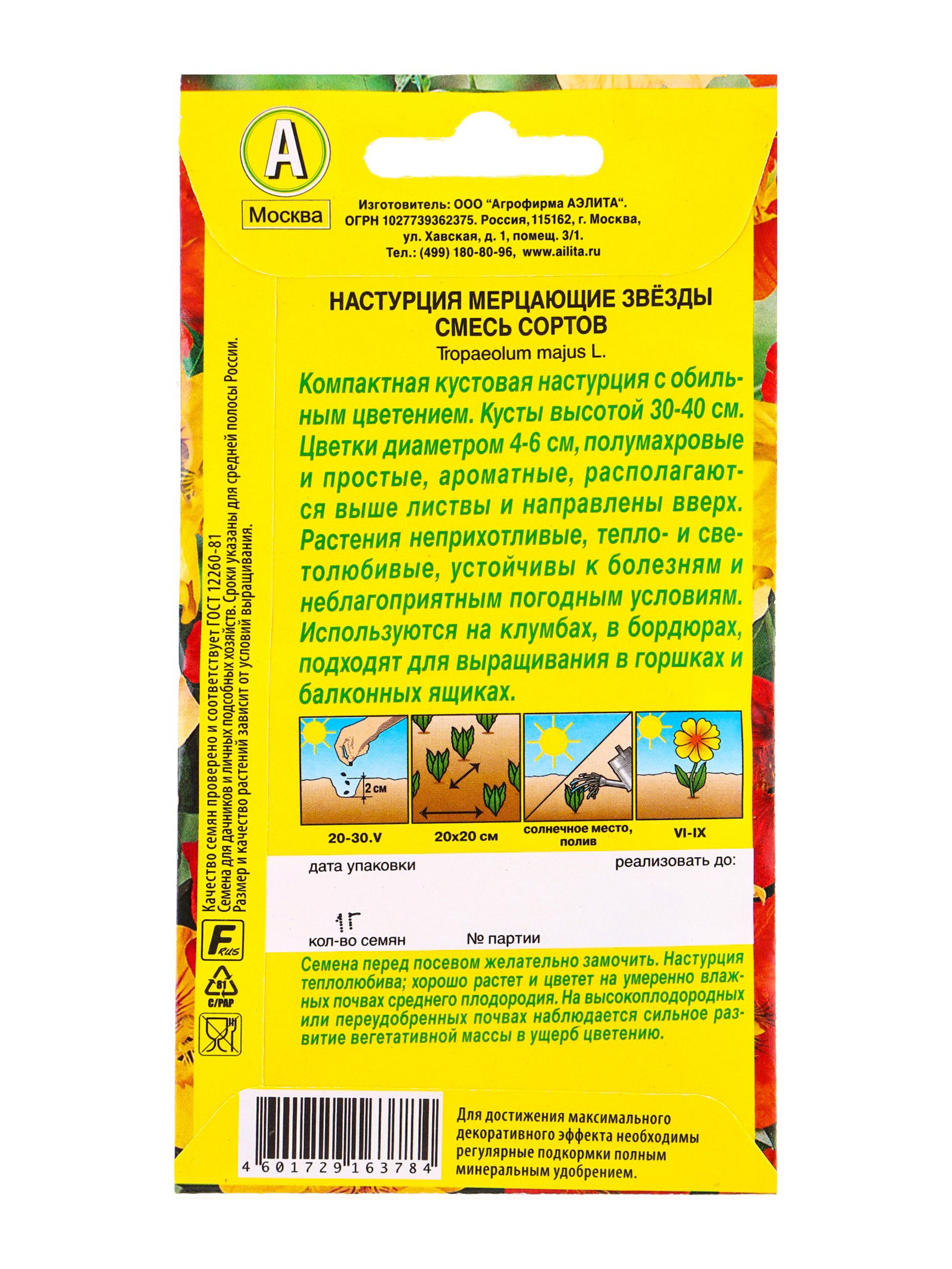 Семена цветов Настурция махровая Мерцающие звезды, смесь сортов, Ц/П,1 г, Агрофирма АЭЛИТА, Нидерланды