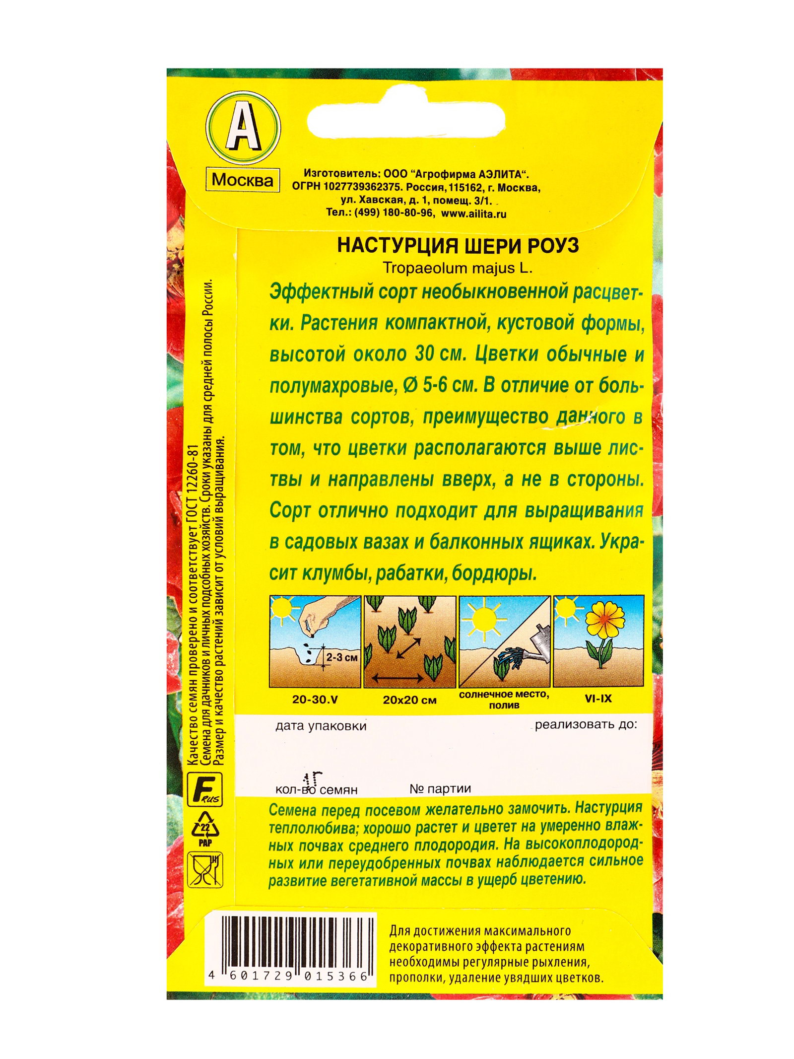 Семена цветов Настурция Шери Роуз, Ц/П,1 г, Агрофирма АЭЛИТА, Нидерланды