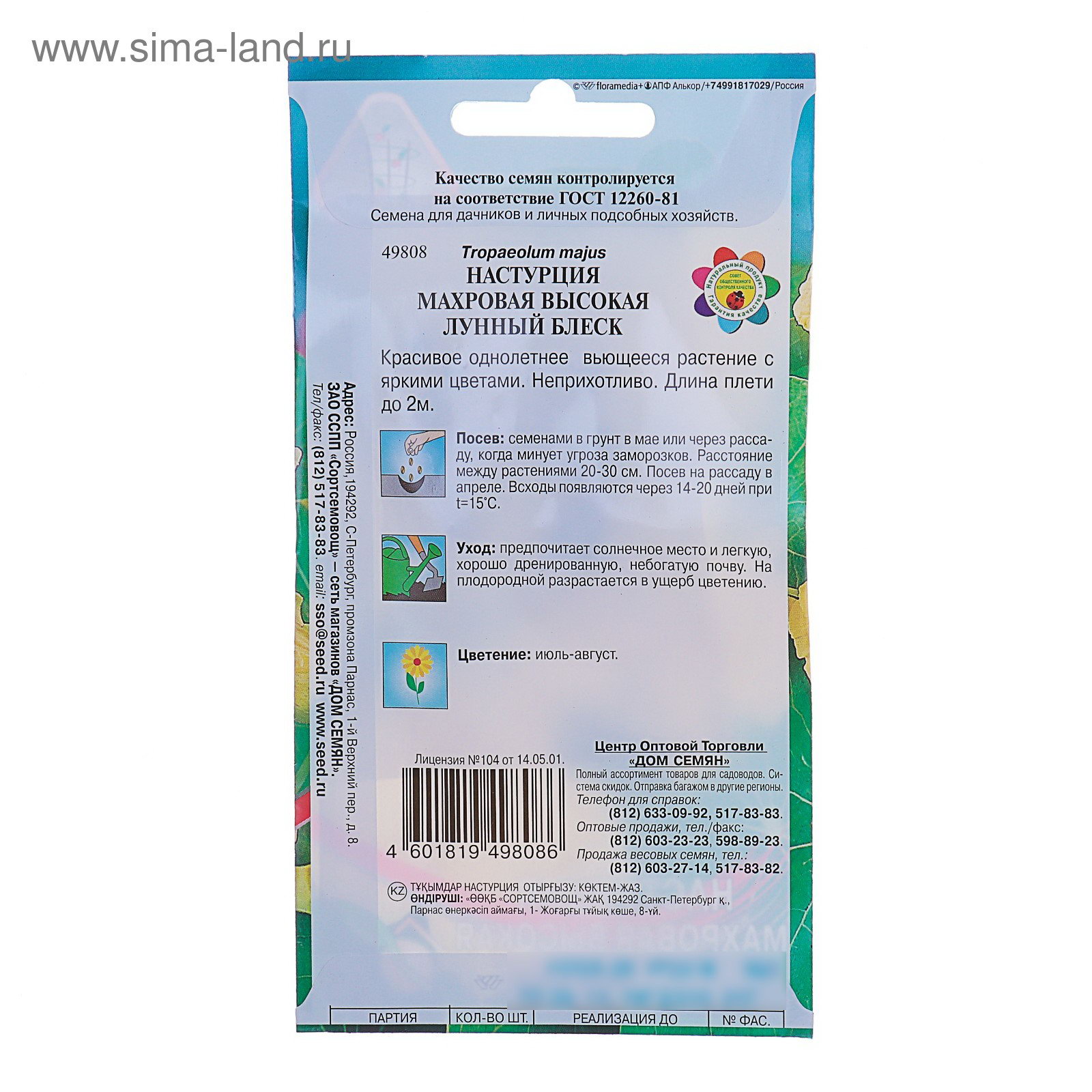 Семена цветов Настурция махровая высокая "Лунный Блеск" О, 9 шт, 8x15x0.3 см., Дом семян, Россия