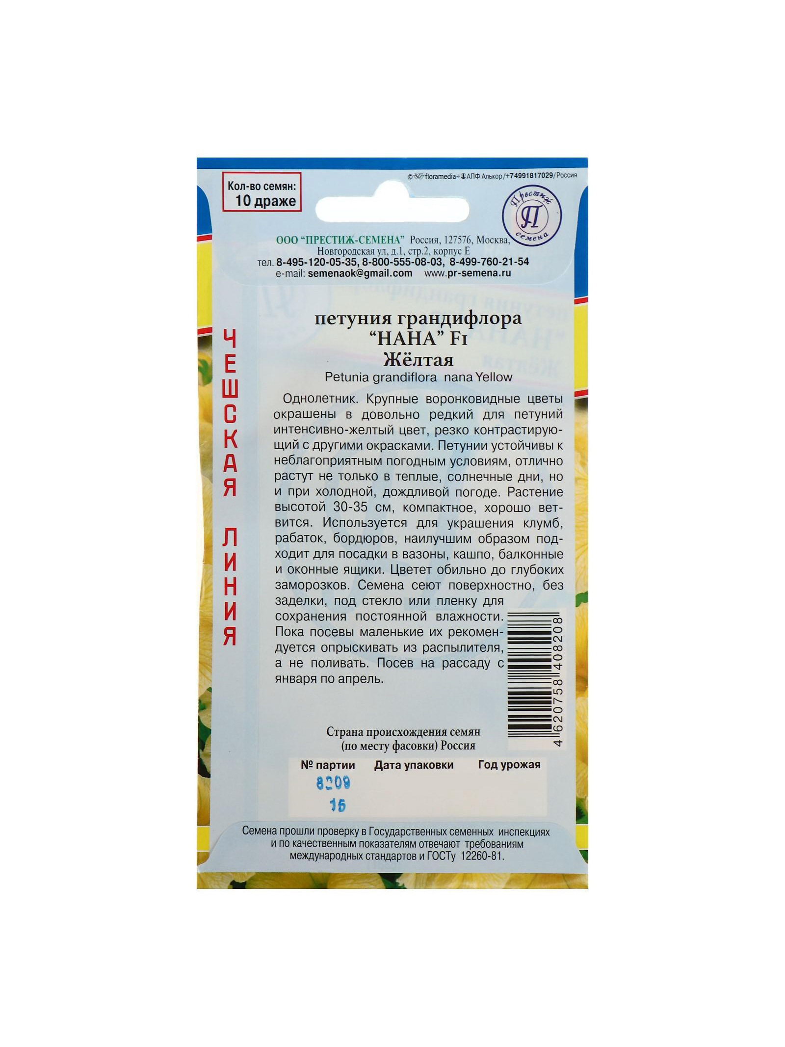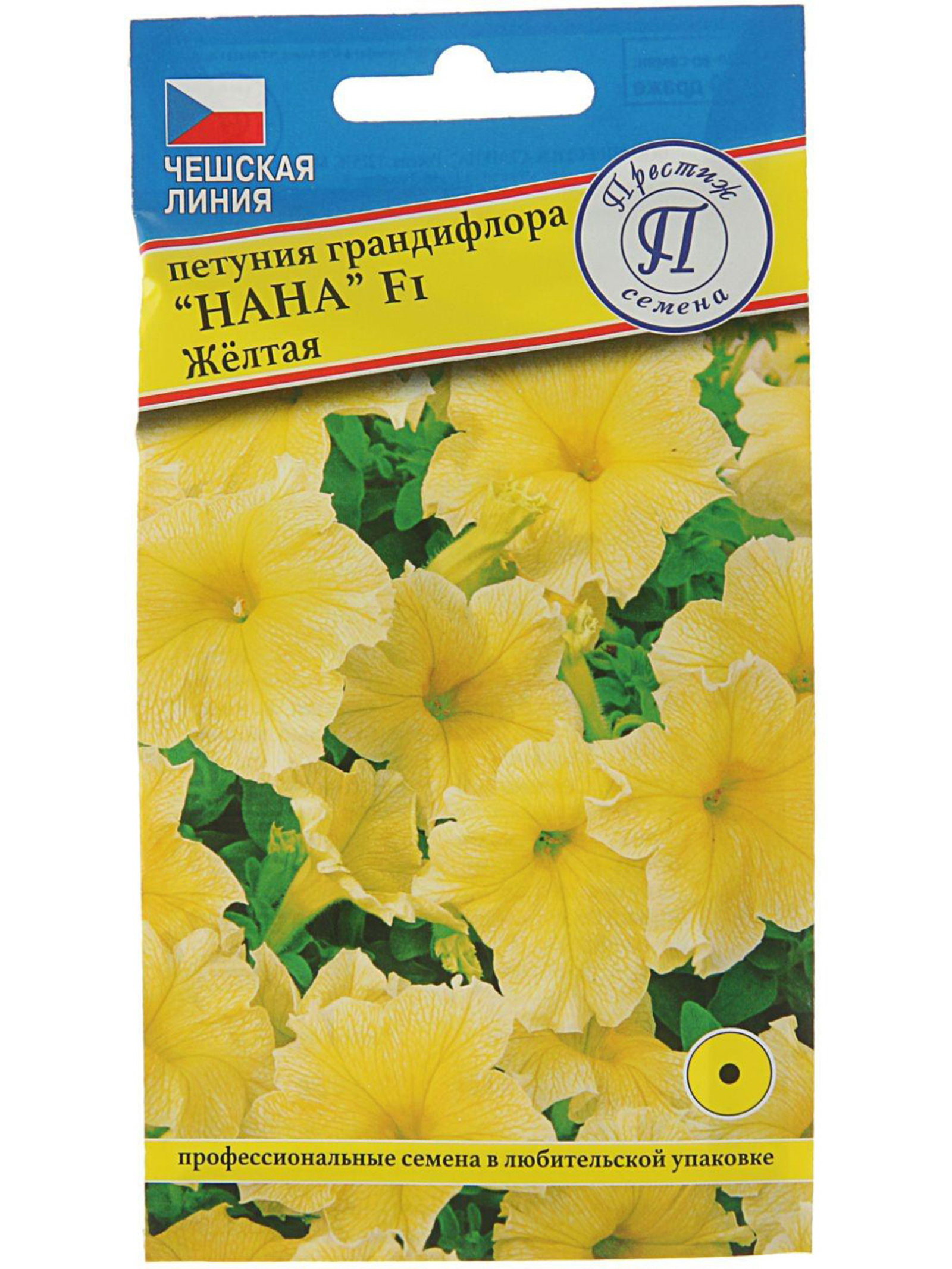 Семена цветов Петуния грандифлора "Нана" Желтая F1, О, драже 10 шт, Престиж семена, Россия