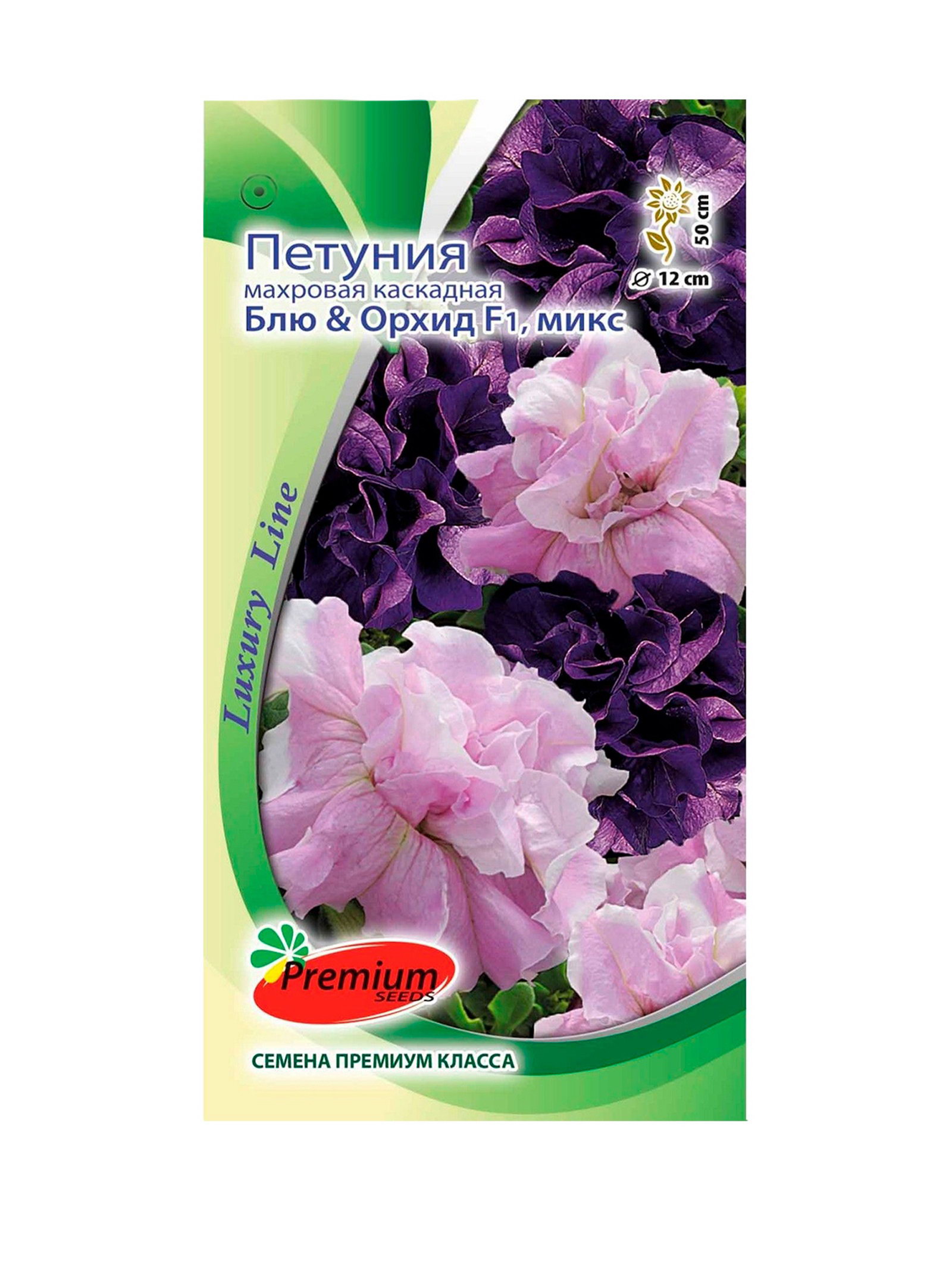 Семена цветов Петуния Махровая Каскадная Блю&Орхид F1, смесь, О, 8 шт, 0.5x8x15 см., Premium seeds, Россия