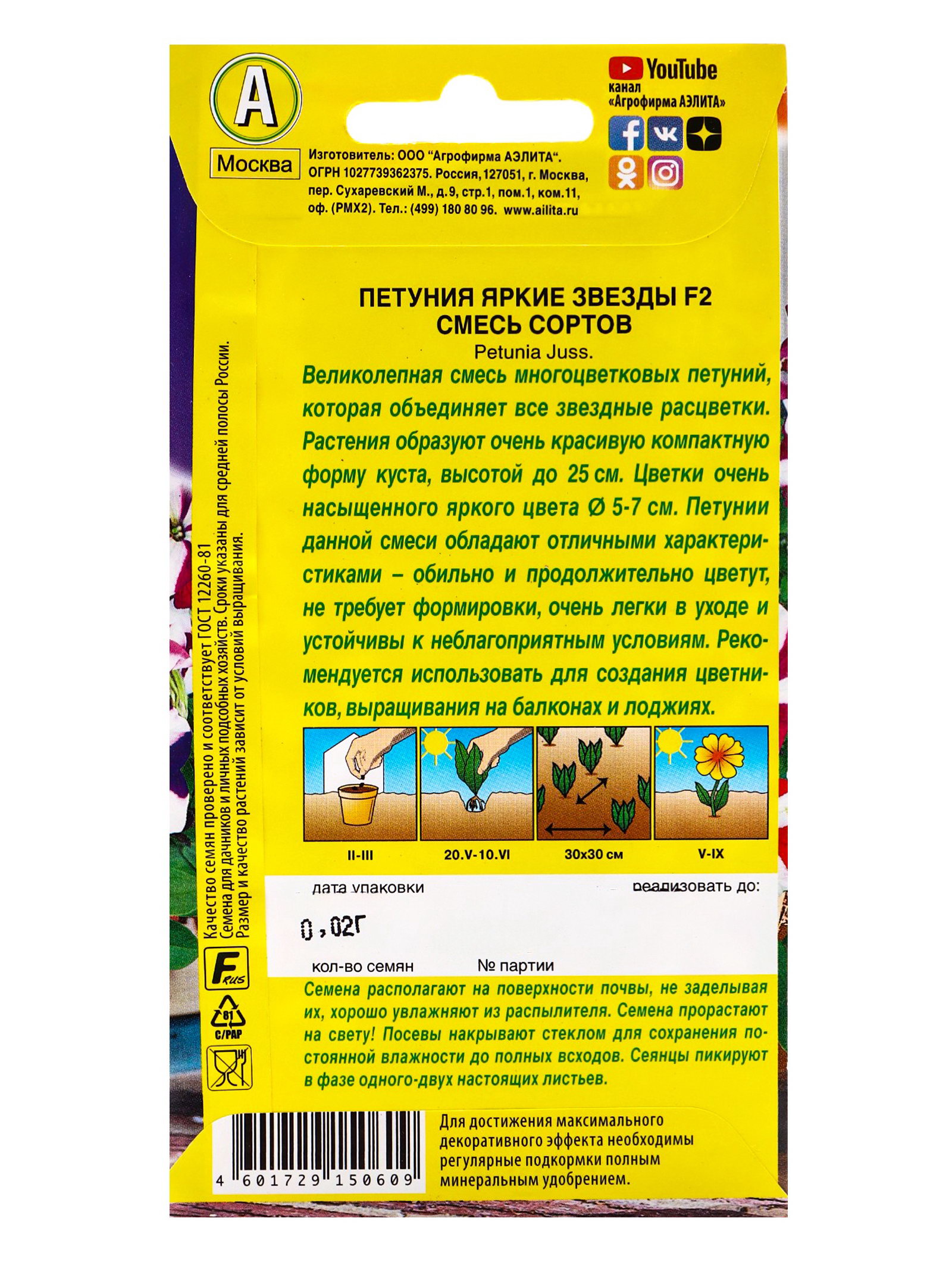 Семена Петуния "Яркие звезды", F2, многоцветковая, смесь сортов, 0.02 г, Агрофирма АЭЛИТА, Нидерланды
