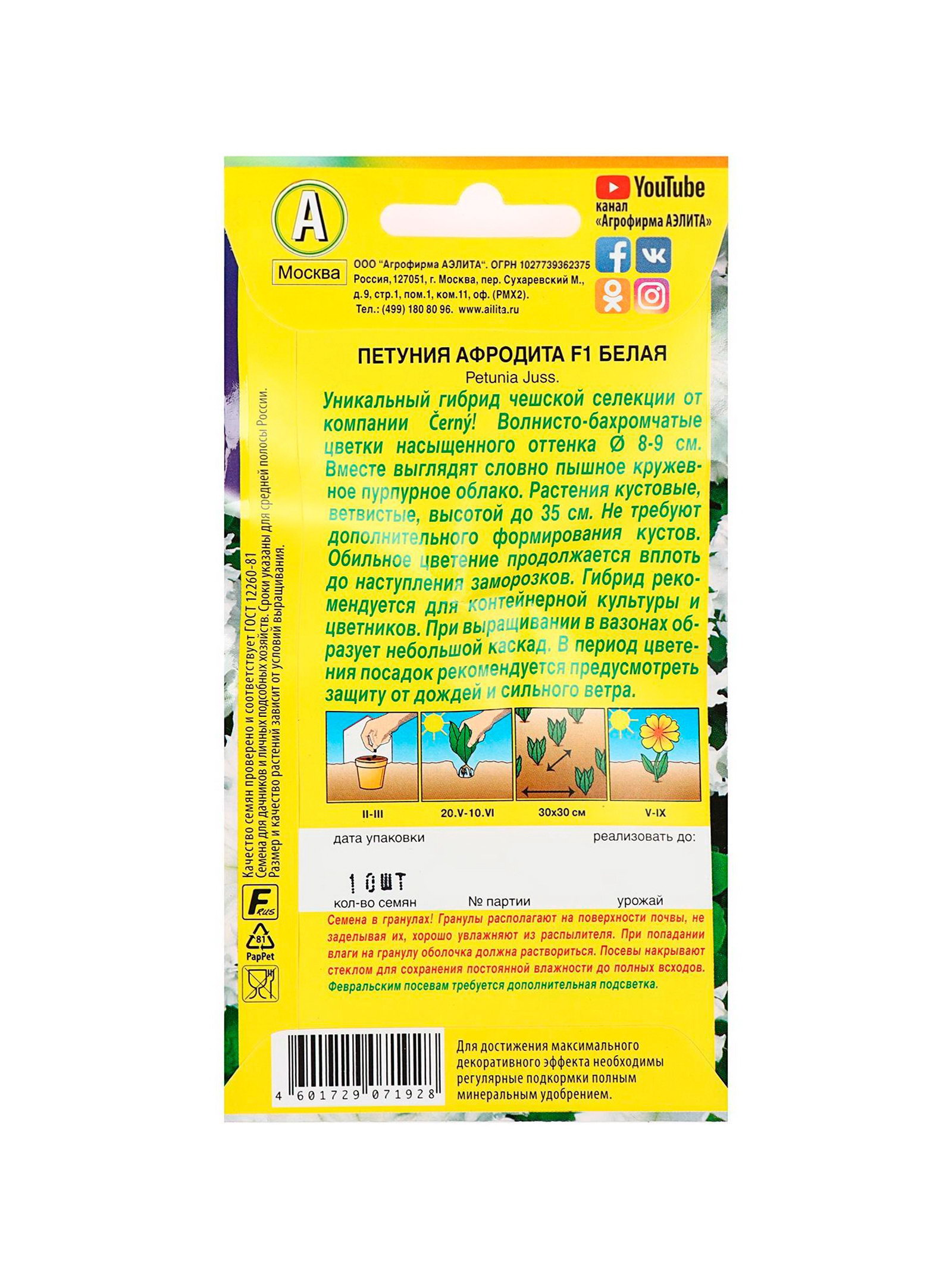 Семена Петуния Афродита F1 белая крупноцветковая, 7 шт, Агрофирма АЭЛИТА, Чехия