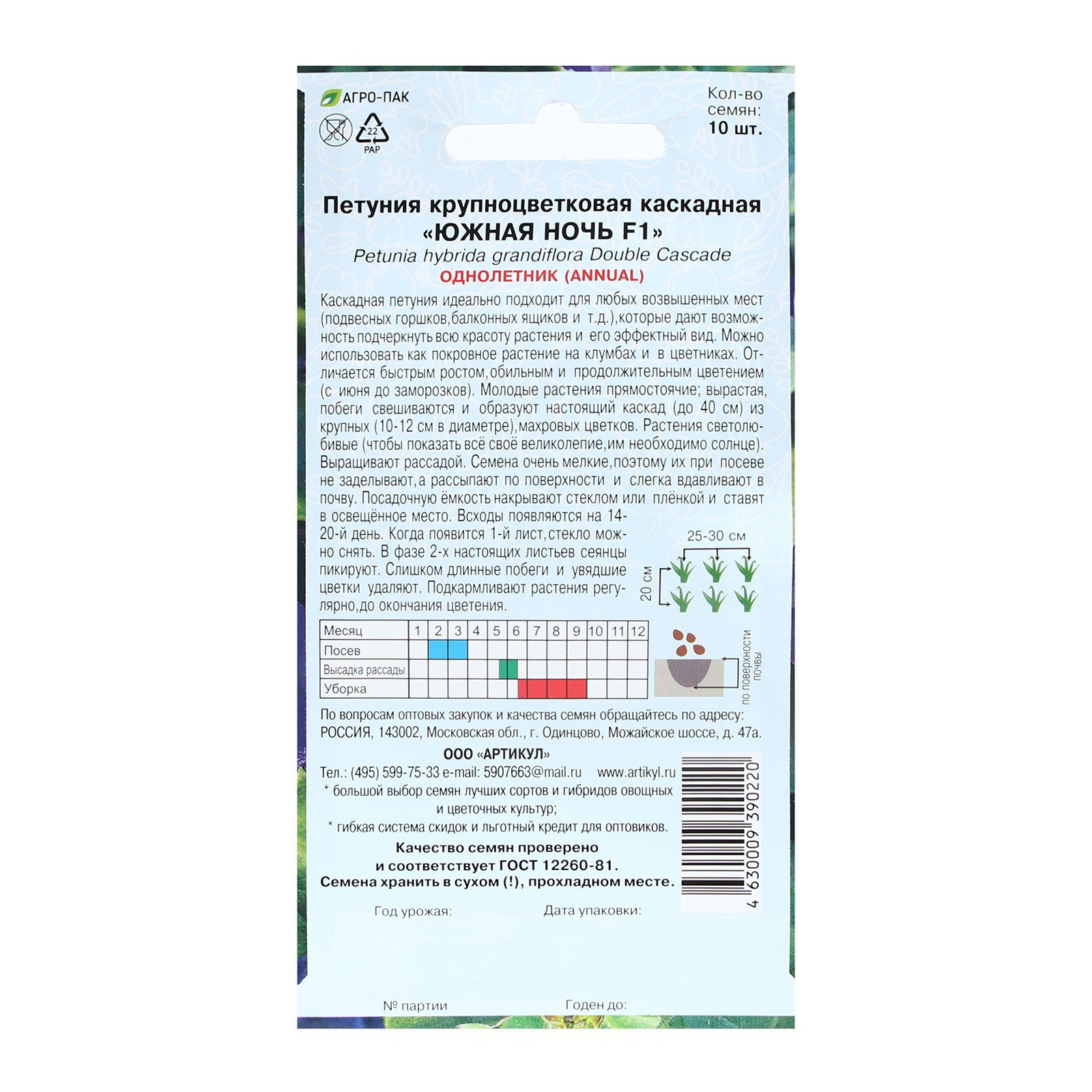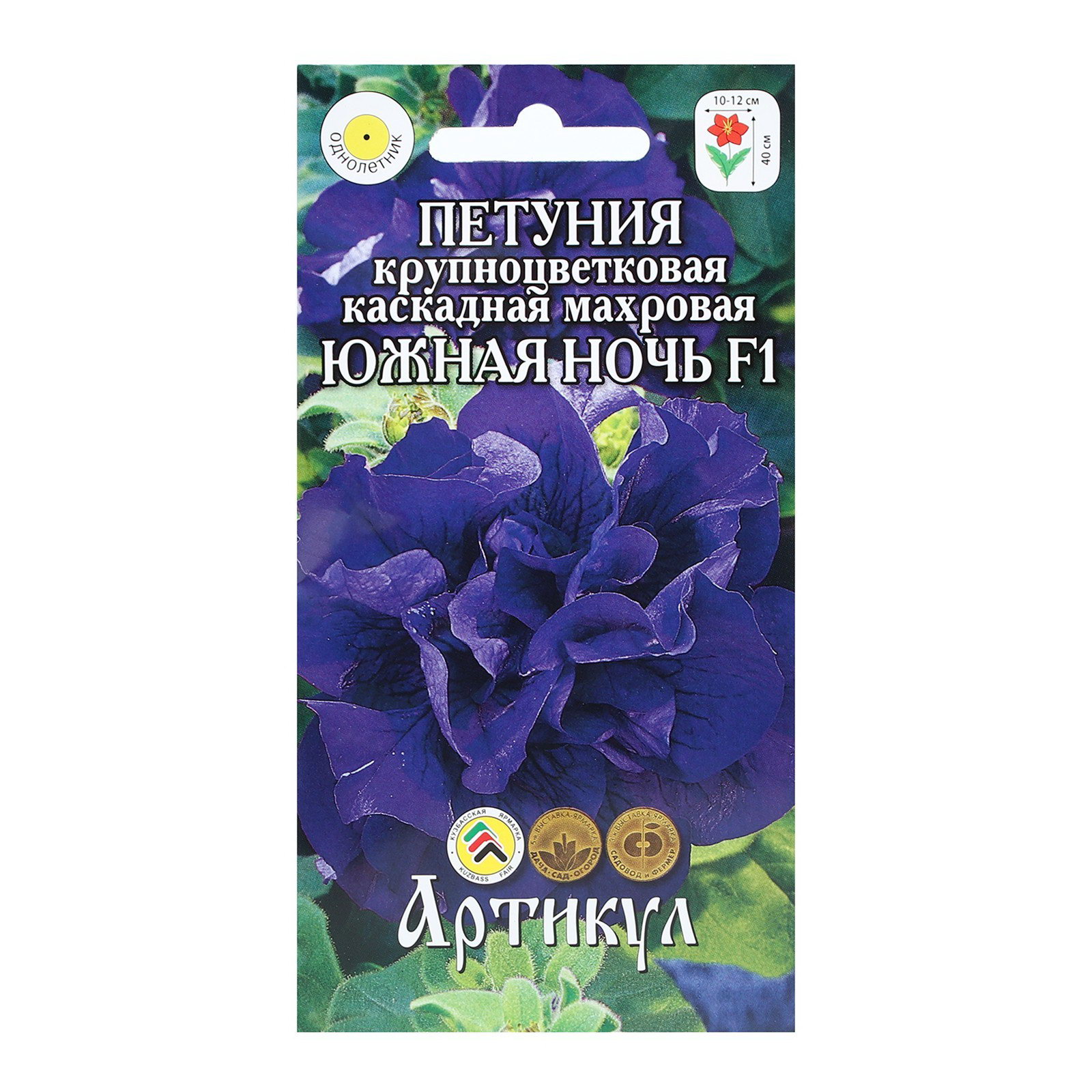 Семена цветов Петуния крупноцветковая махровая "Южная ночь" F1, О, 10 шт., 0.3x8x15 см., Артикул, Россия