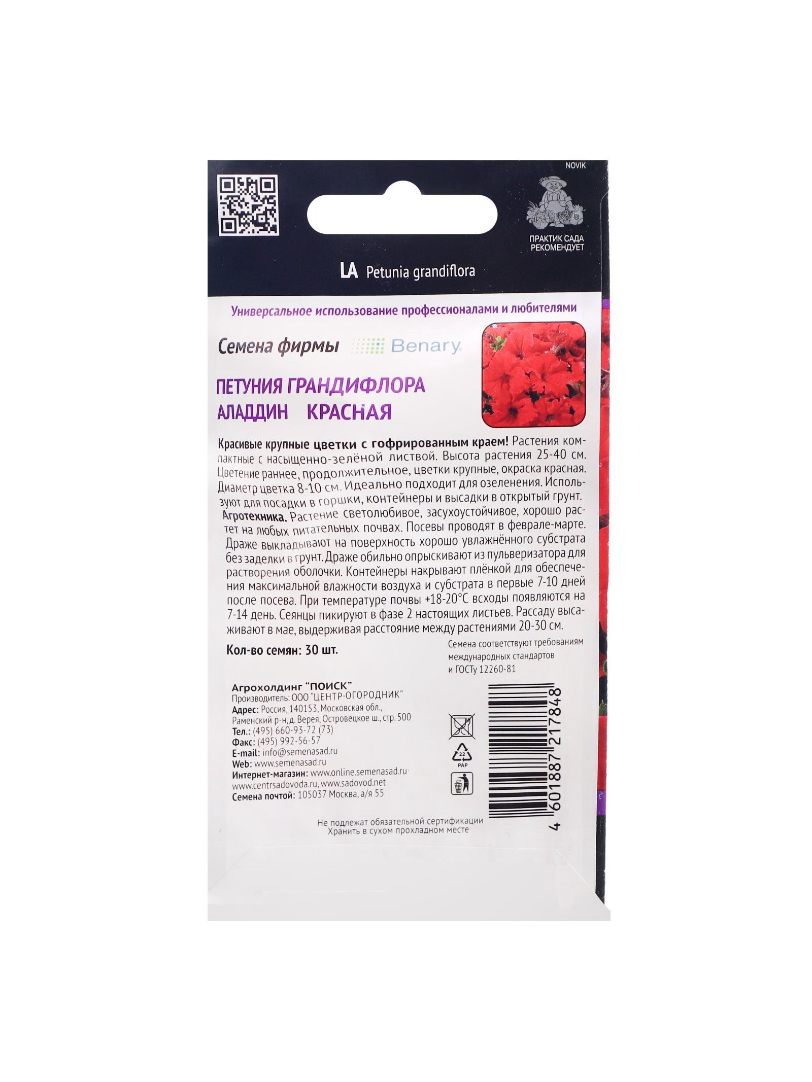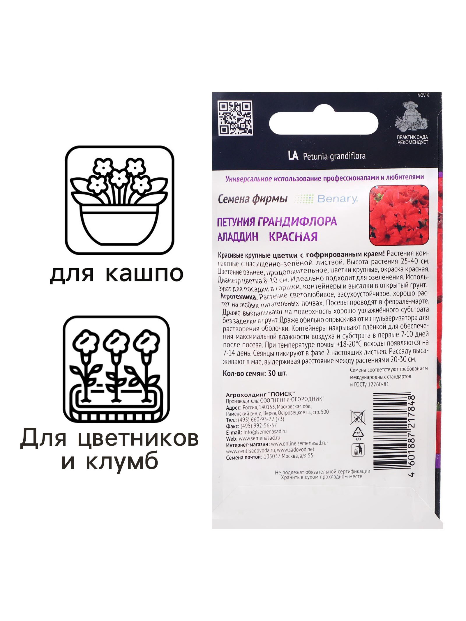 Семена цветов Петуния грандифлора "Аладдин Красная", 30 шт., ПОИСК, Нидерланды