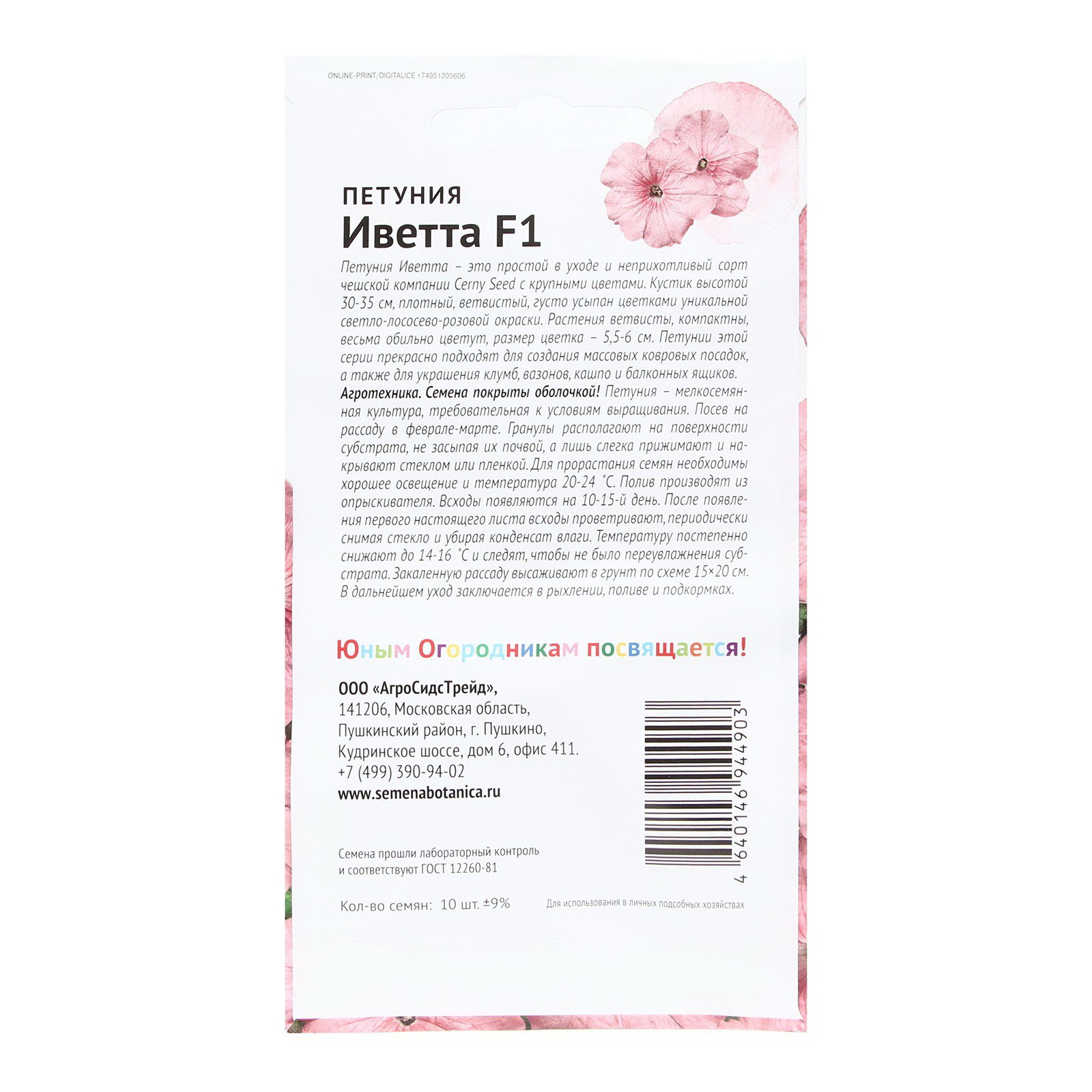 Семена Цветов Петуния "Иветта", "Детская грядка",10 шт, Агросидстрейд, Чехия