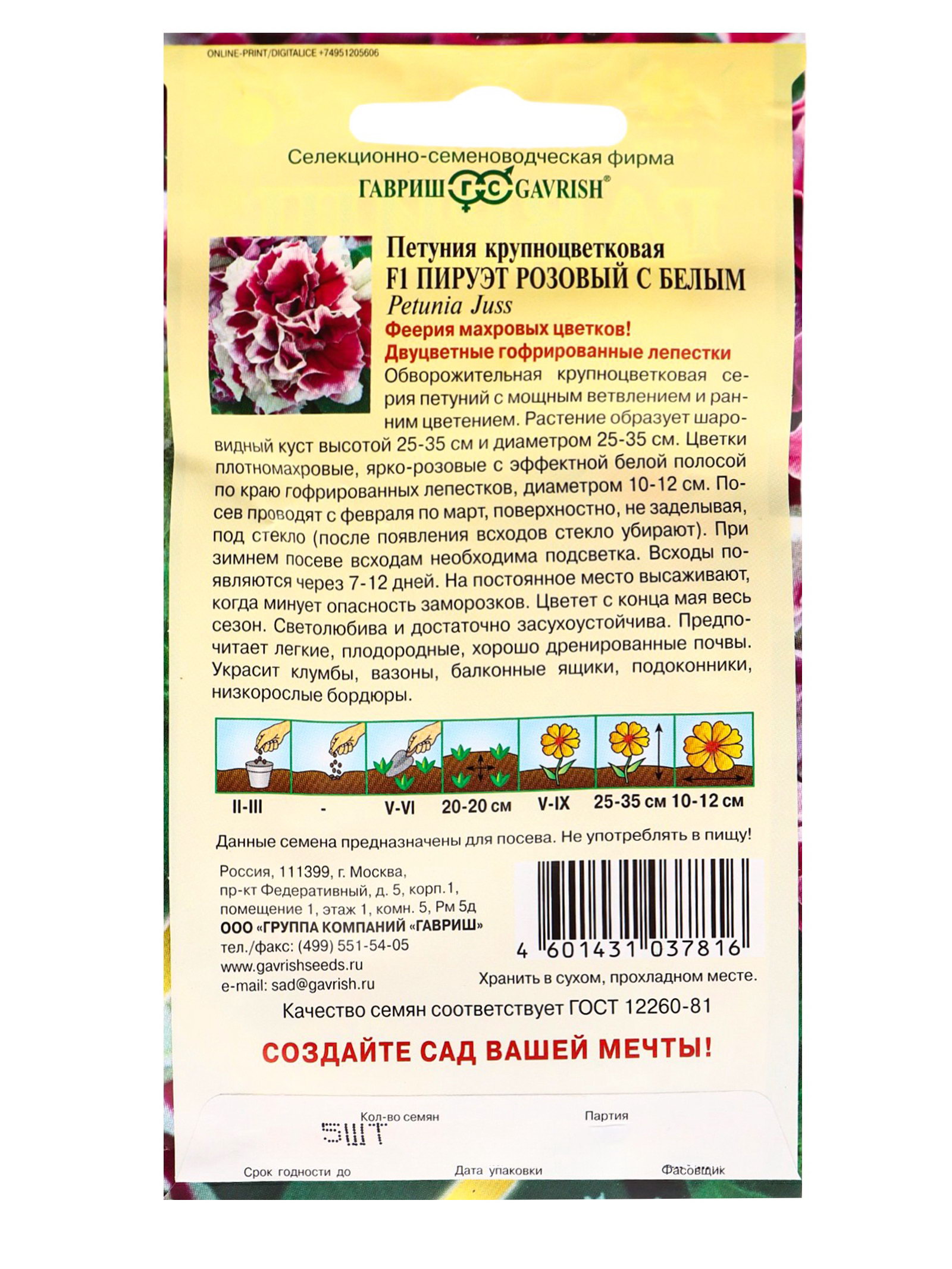 Семена Петуния "Пируэт", ц/п, розовый с белым, F1, 5 шт, Гавриш, Россия