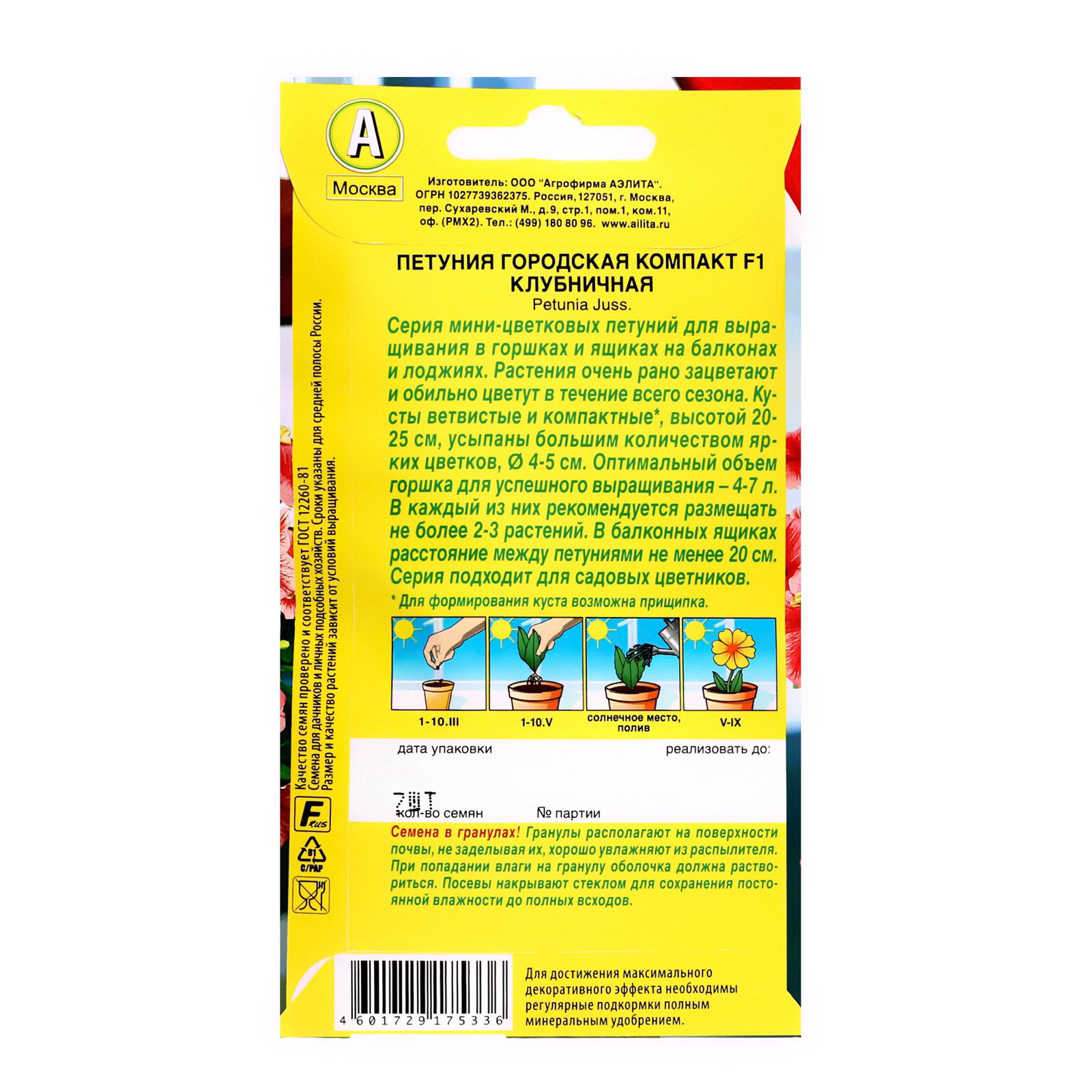 Простота ухода Эти петунии не требуют особых усилий по уходу. Достаточно выбрать солнечное место и обеспечить регулярный полив. Трехлетний срок агрономической годности семян гарантирует их долгосрочное хранение и использование. Идеальный выбор для вашего сада Цветущие саженцы петунии "Городская компакт" помогут создать атмосфеу легкости и радости в любом уголке вашего сада. Попробуйте посадить их рядом с другими растениям для создания многоцветных композиций, либо используйте их как акцентный элемент на фоне зелени. | ||