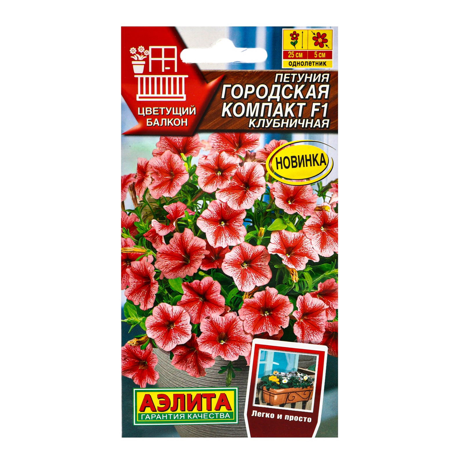 Семена цветов Петуния "Городская компакт" F1 клубничная, ц/п, 7 шт, Аэлита Агро, Чехия