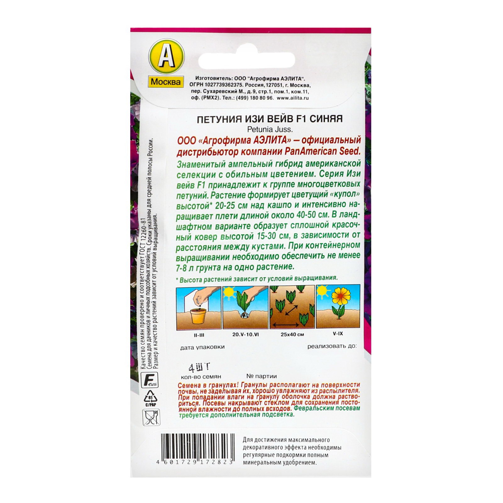 Семена цветов Петуния "Изи вейв" синяя F1, ц/п, 4 шт, Аэлита Агро, США