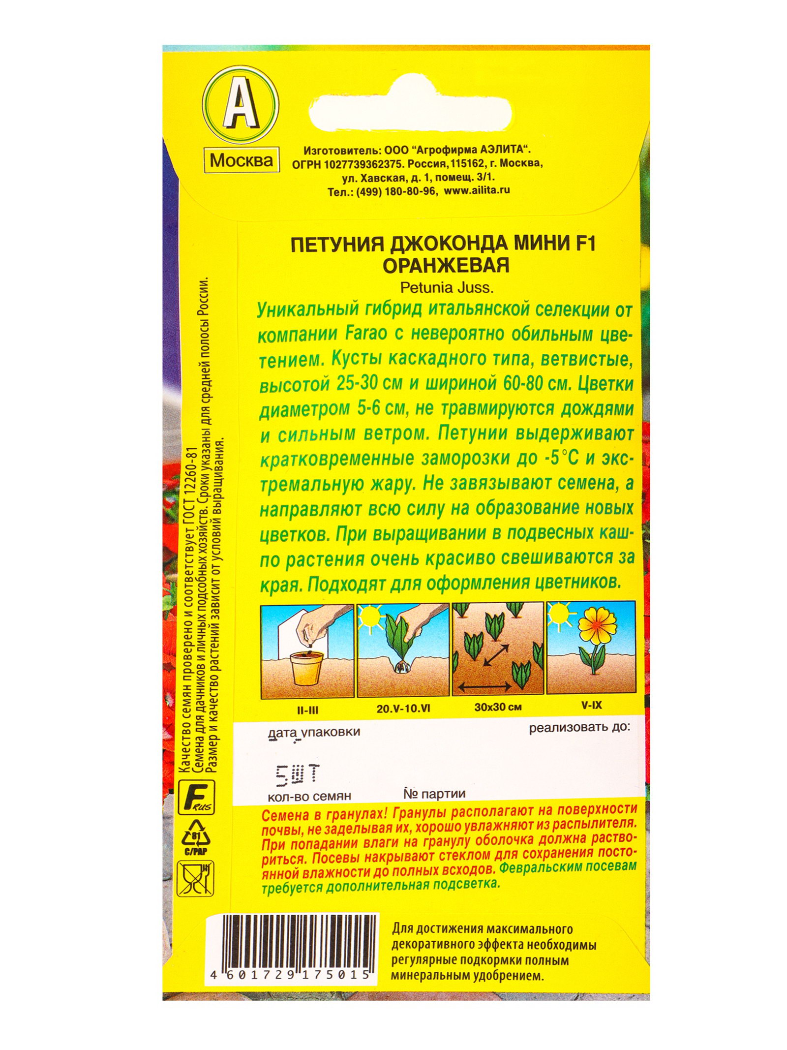 Семена цветов Петуния Джоконда мини F1 оранжевая, Агрофирма АЭЛИТА, Россия