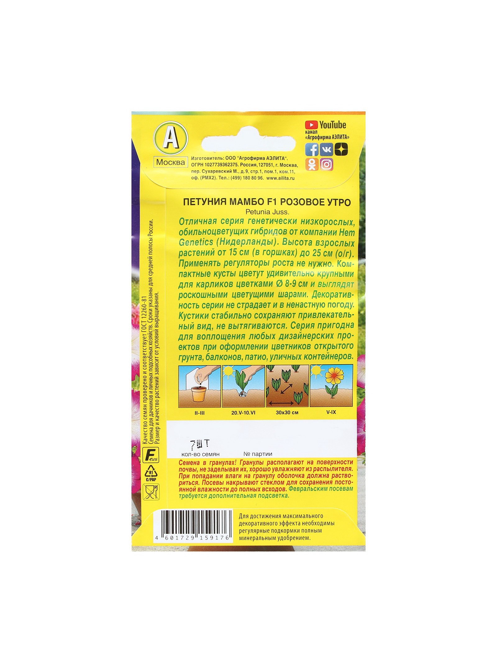 Набор семян Петуния "Мамбо", F1, розовое утро, многоцветковая, пробирка, 5 шт., 9x17x1 см., Мой выбор, Россия