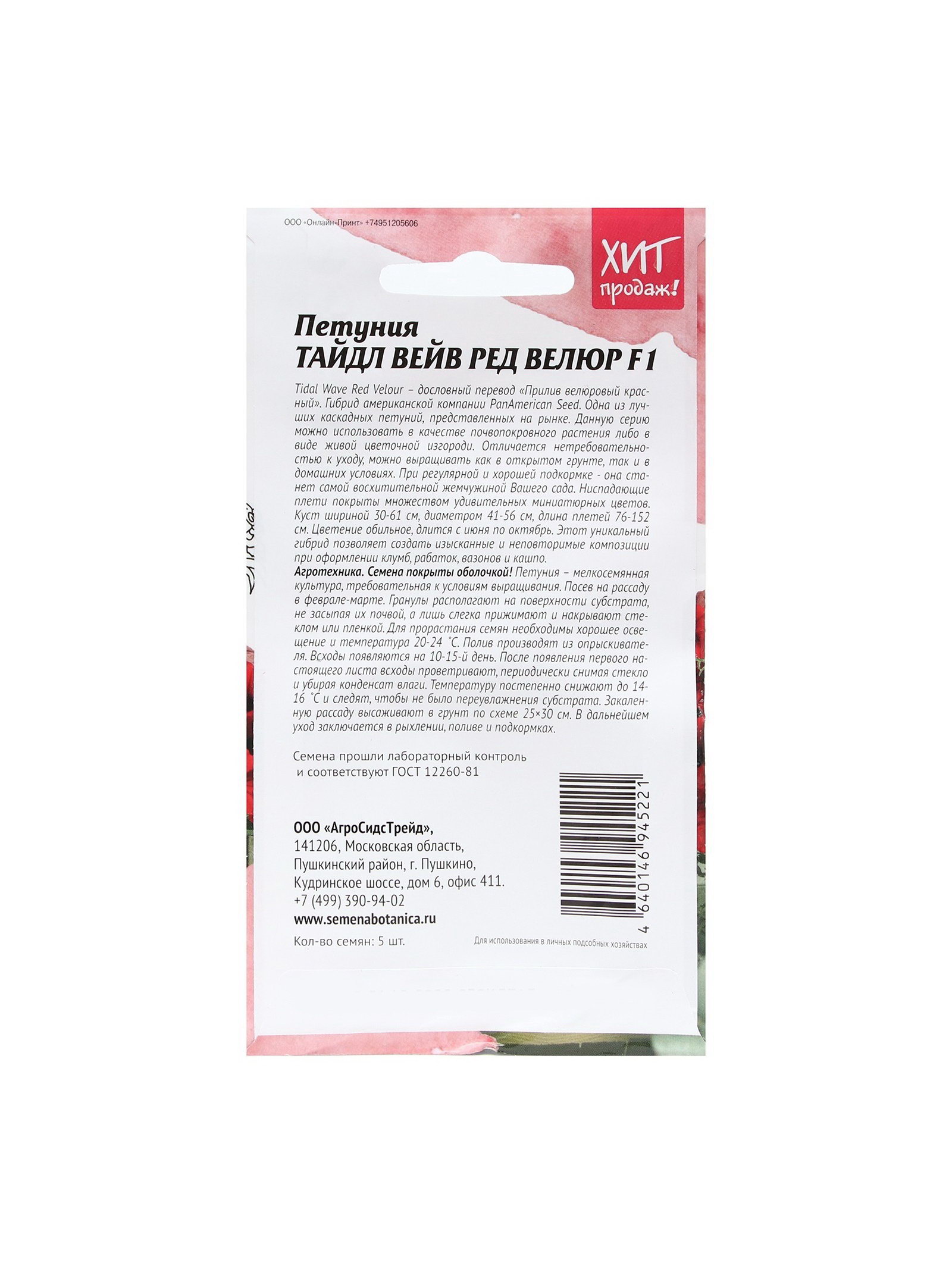 Набор семян Петуния "Тайдал Вейв Ред Велюр", 2 шт., 9x17x1 см., Мой выбор, Россия