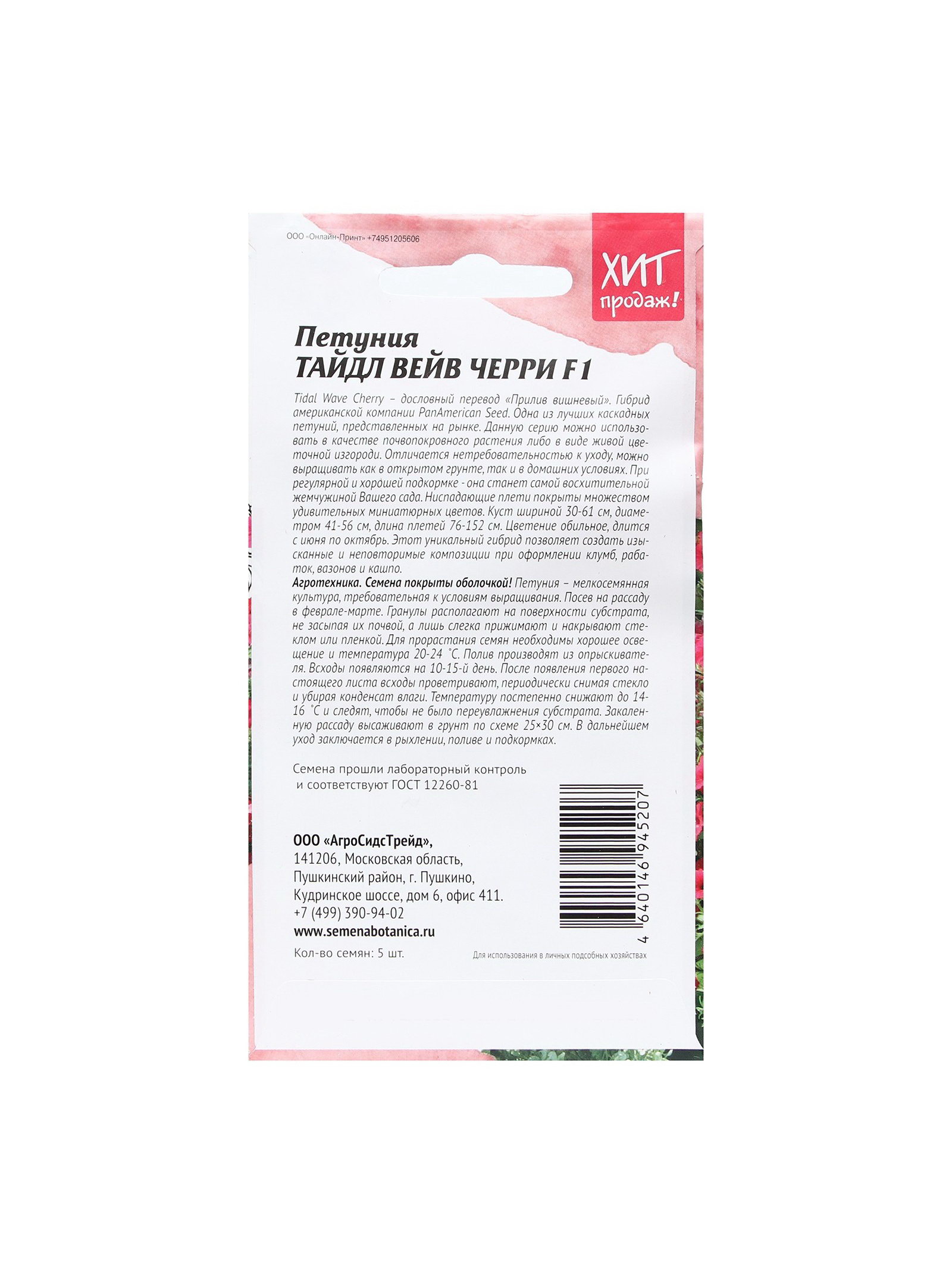 Набор семян Петуния "Тайдал Вейв Черри", 2 шт., 9x17x1 см., Мой выбор, Россия