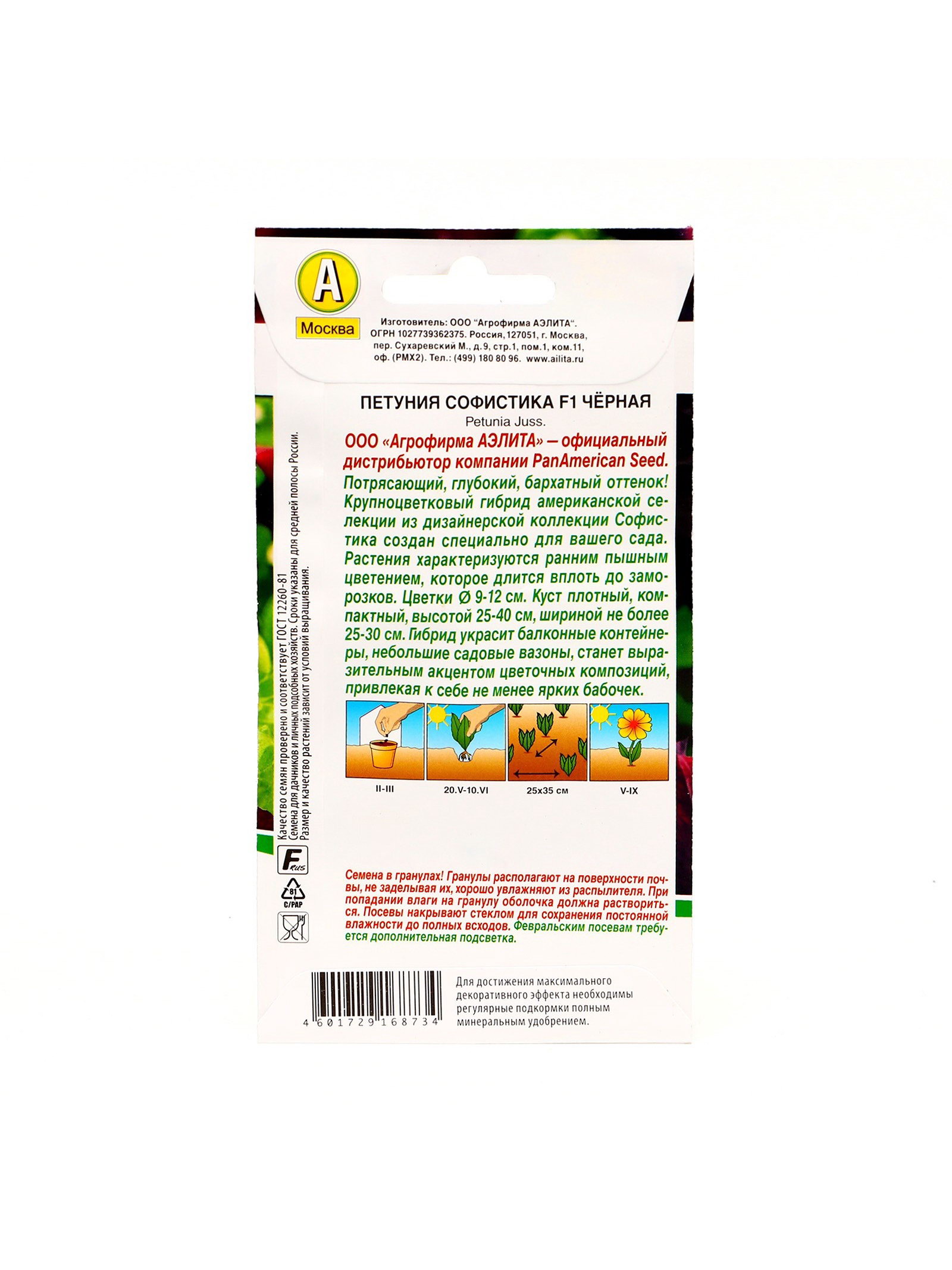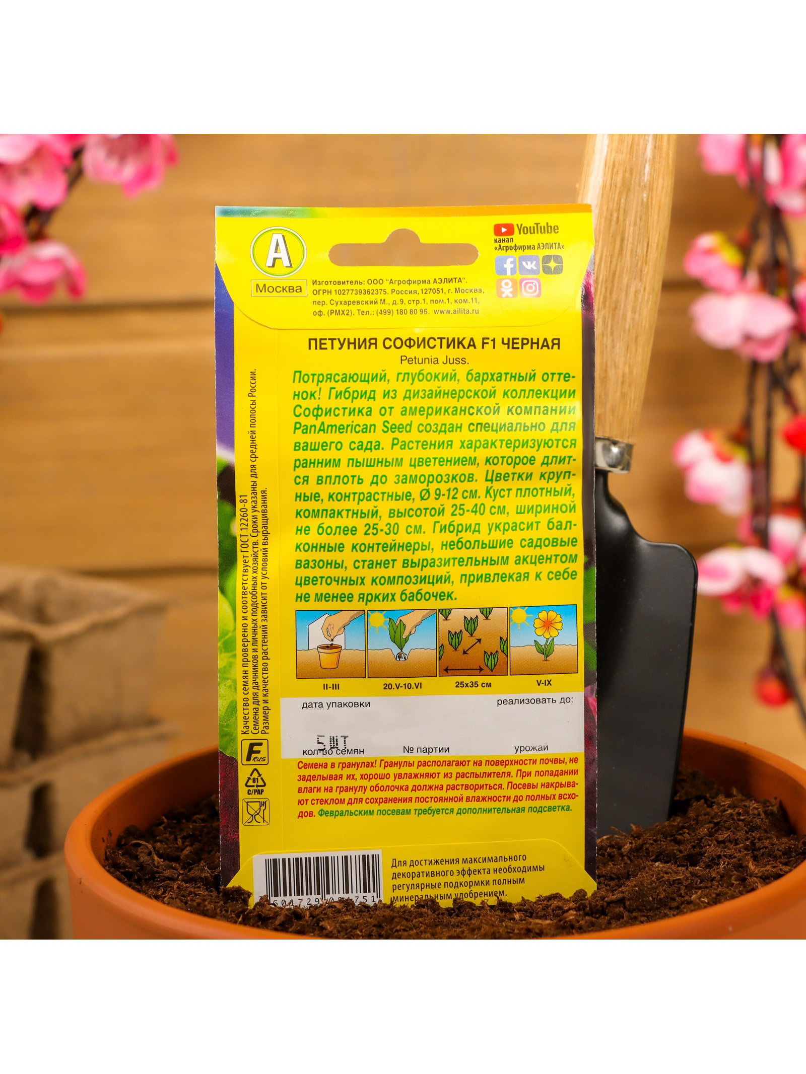 Набор семян Петуния Софистика черная F1 крупноцветковая, 4 шт., 2 шт., 9x17x1 см., Мой выбор, Россия