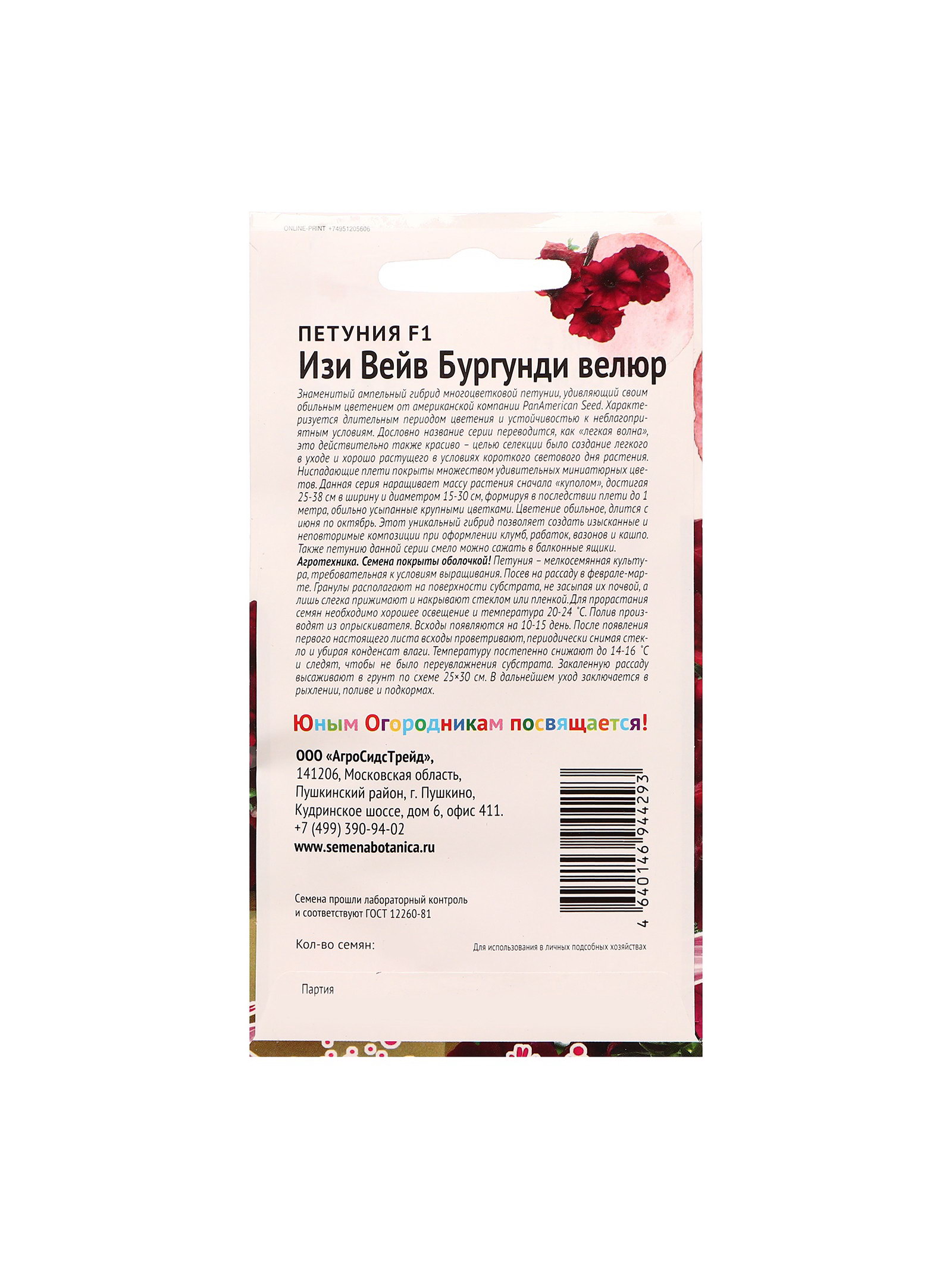 Набор семян Петуния "Изи Вейв Бургунди Велюр", F1, 2 шт., 9x17x1 см., Мой выбор, Россия
