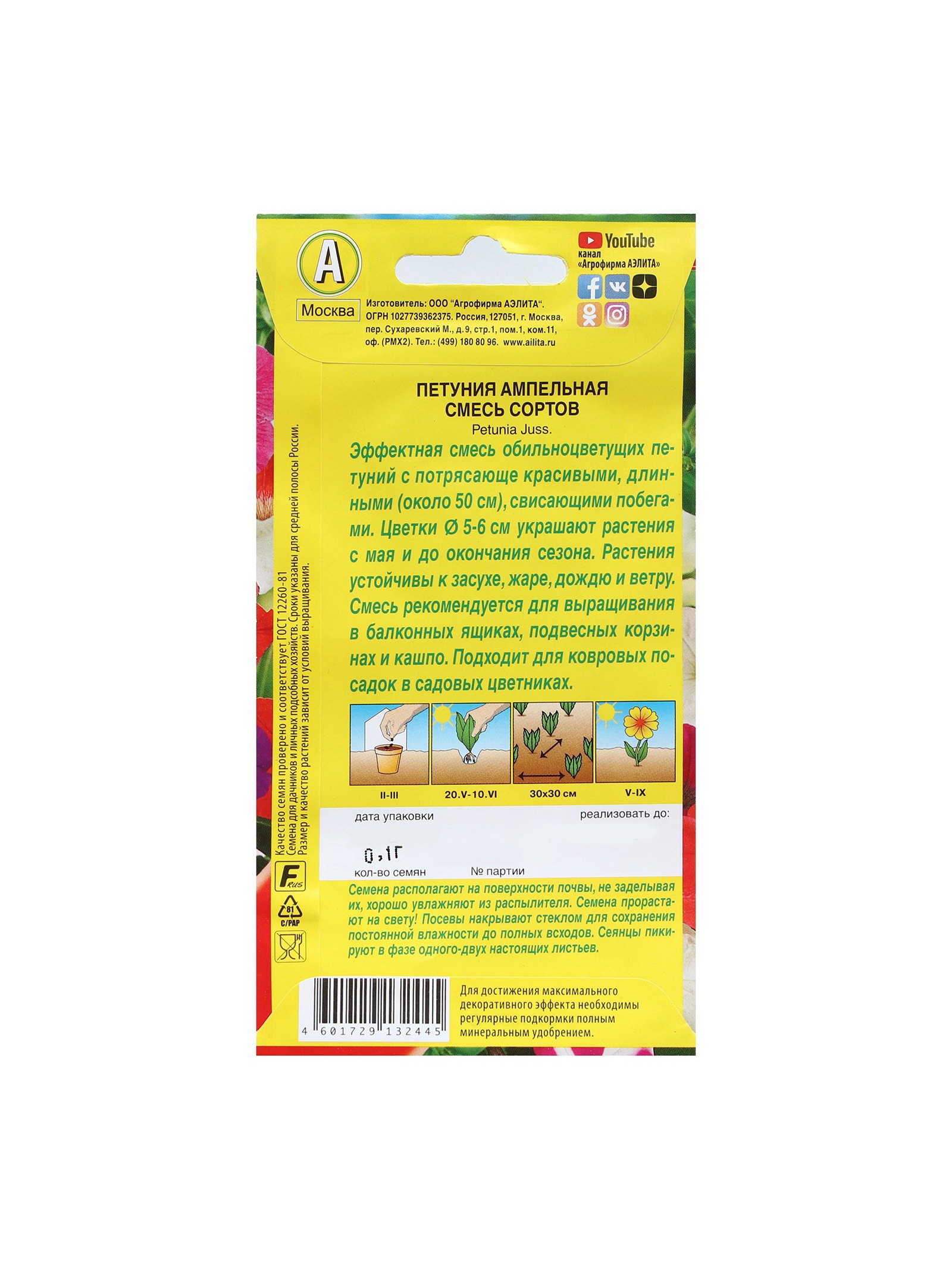 Набор семян Петуния "Ампельная", 5 шт., 9x17x1 см., Мой выбор, Россия