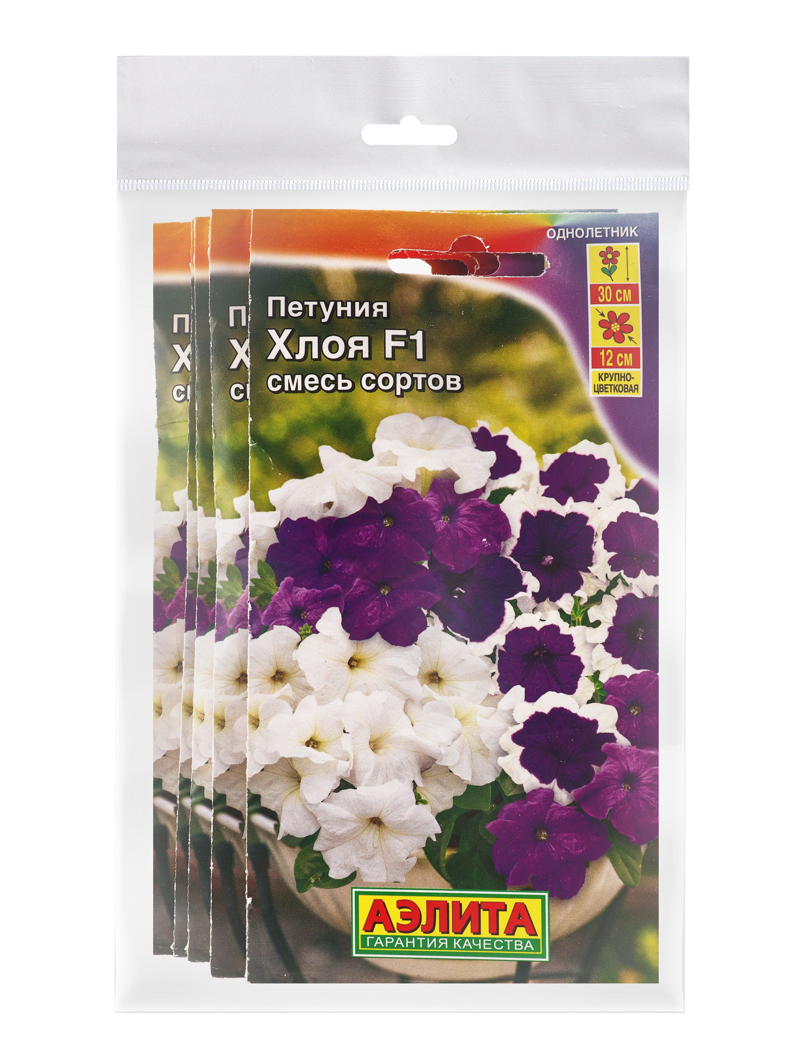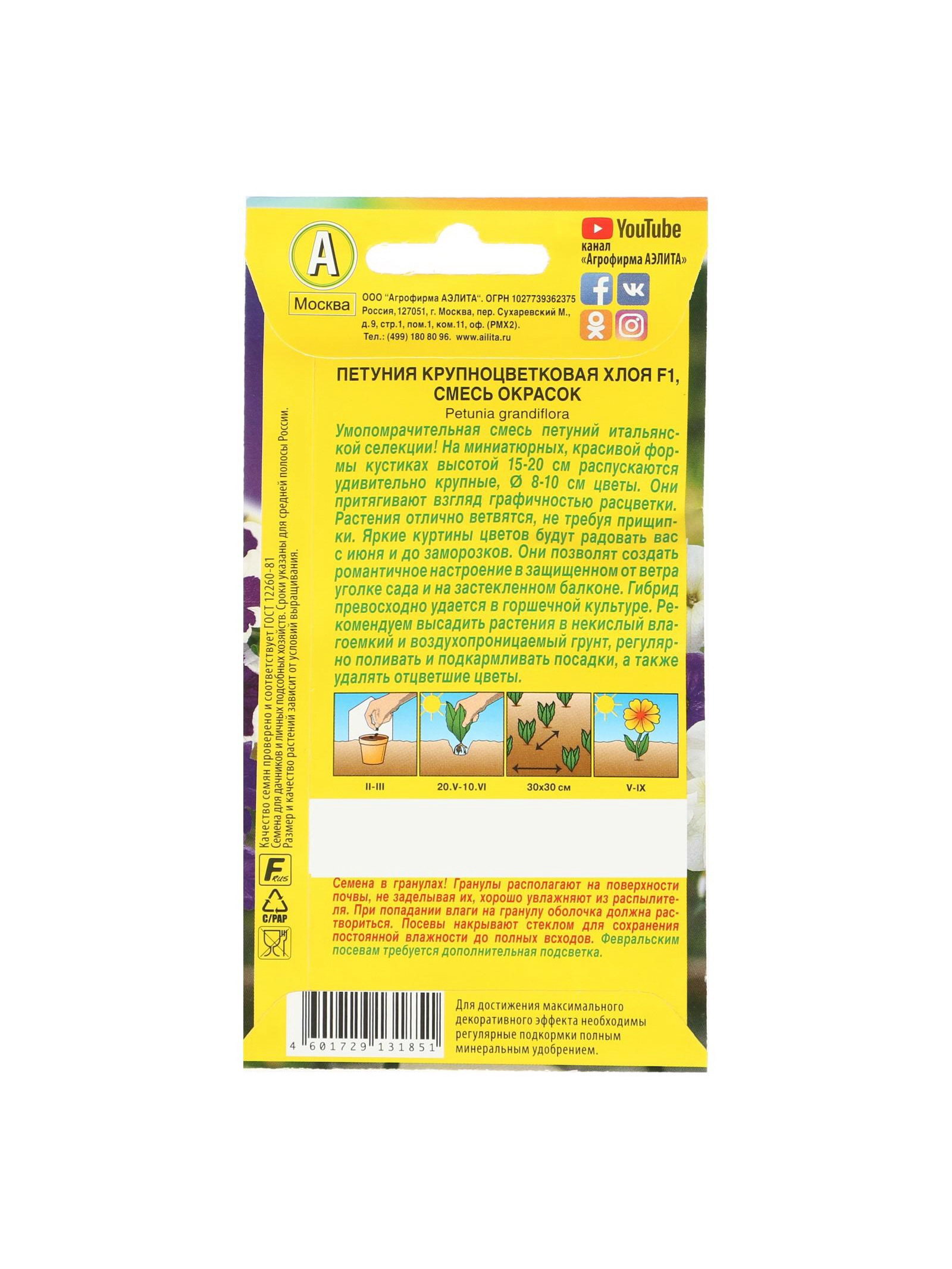 Набор семян Петуния "Хлоя", F1, крупноцветковая, смесь окрасок,, 5 шт., 9x17x1 см., Мой выбор, Россия