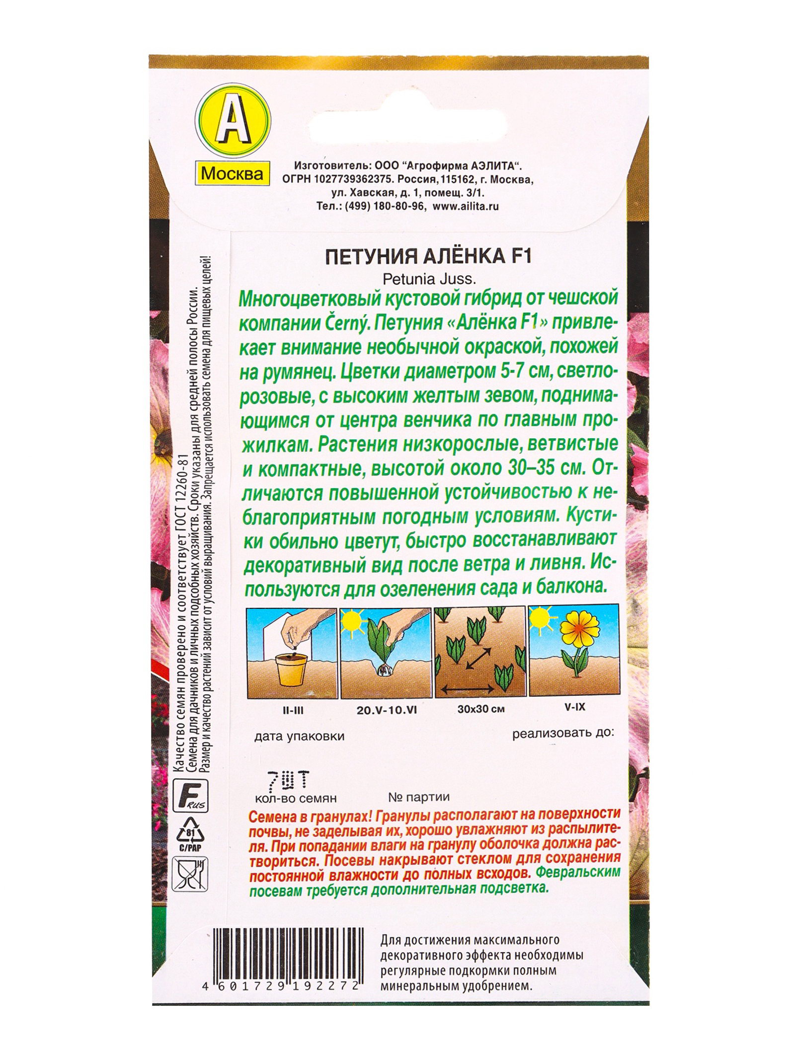 Семена цветов Петуния Алёнка F1 многоцветковая, Агрофирма АЭЛИТА, Чехия