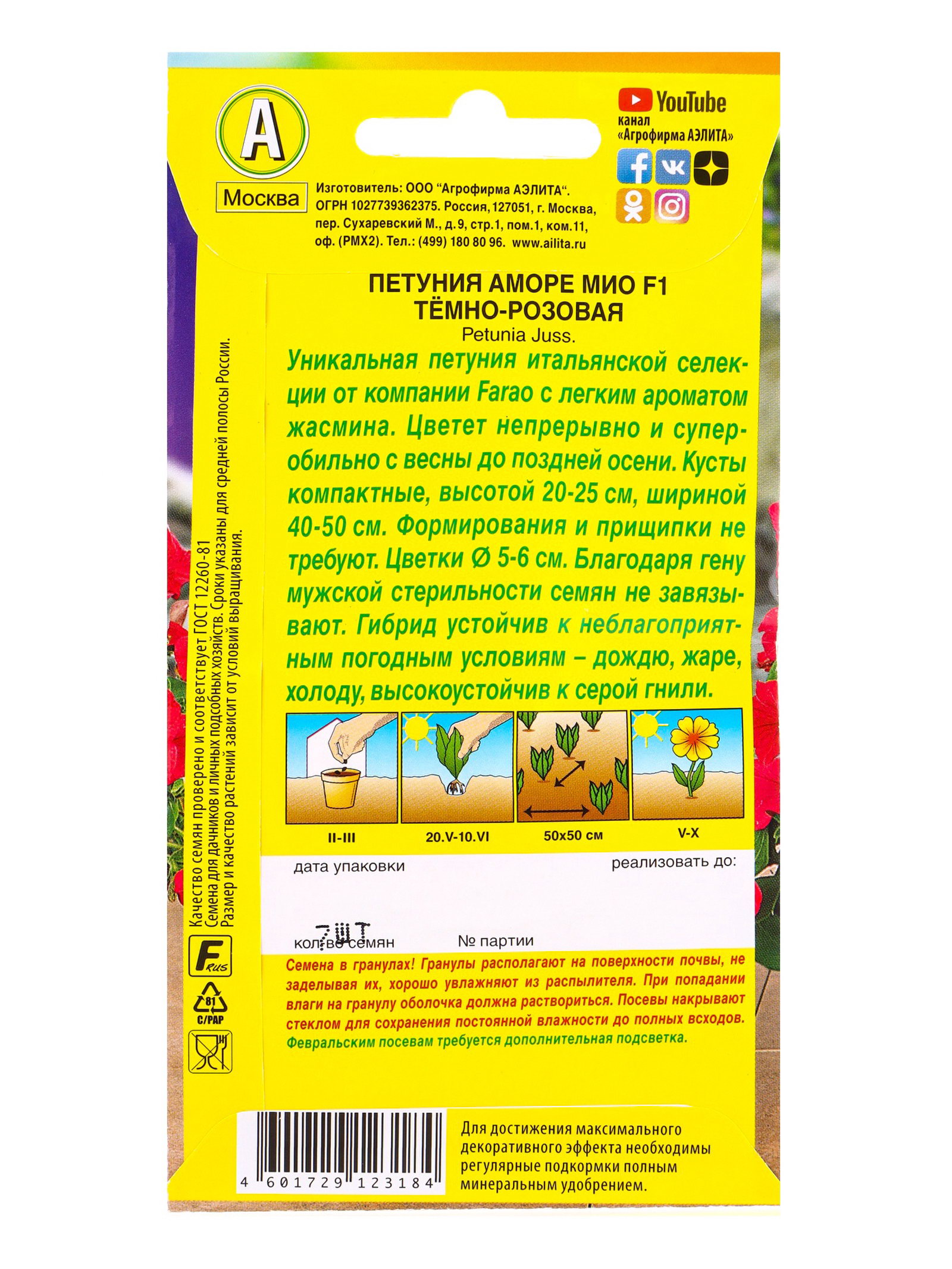 Семена цветов Петуния Аморе Мио темно-розовая F1, Агрофирма АЭЛИТА, Италия