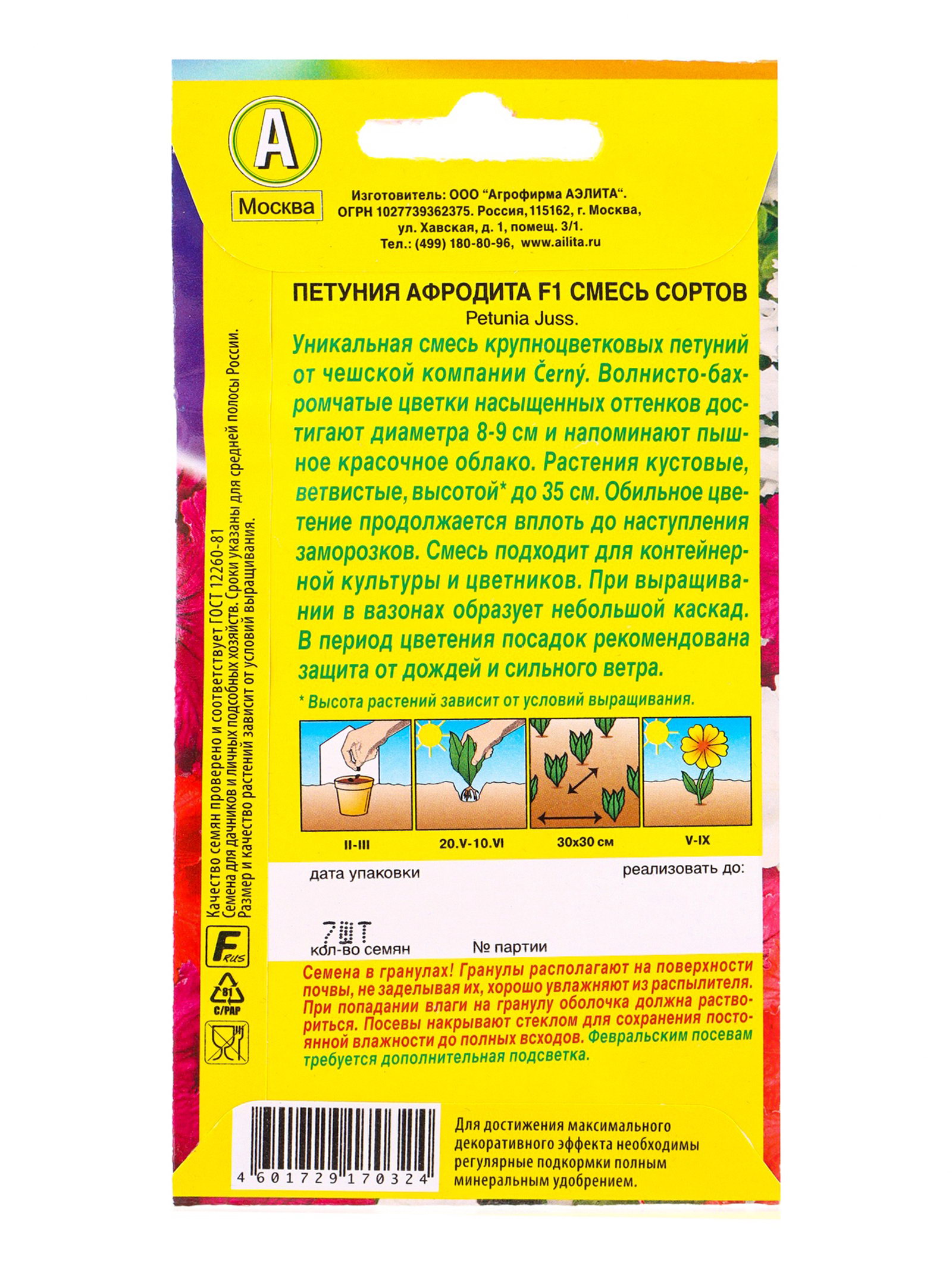 Семена цветов Петуния Афродита F1 крупноцветковая, смесь сортов, Агрофирма АЭЛИТА, Чехия