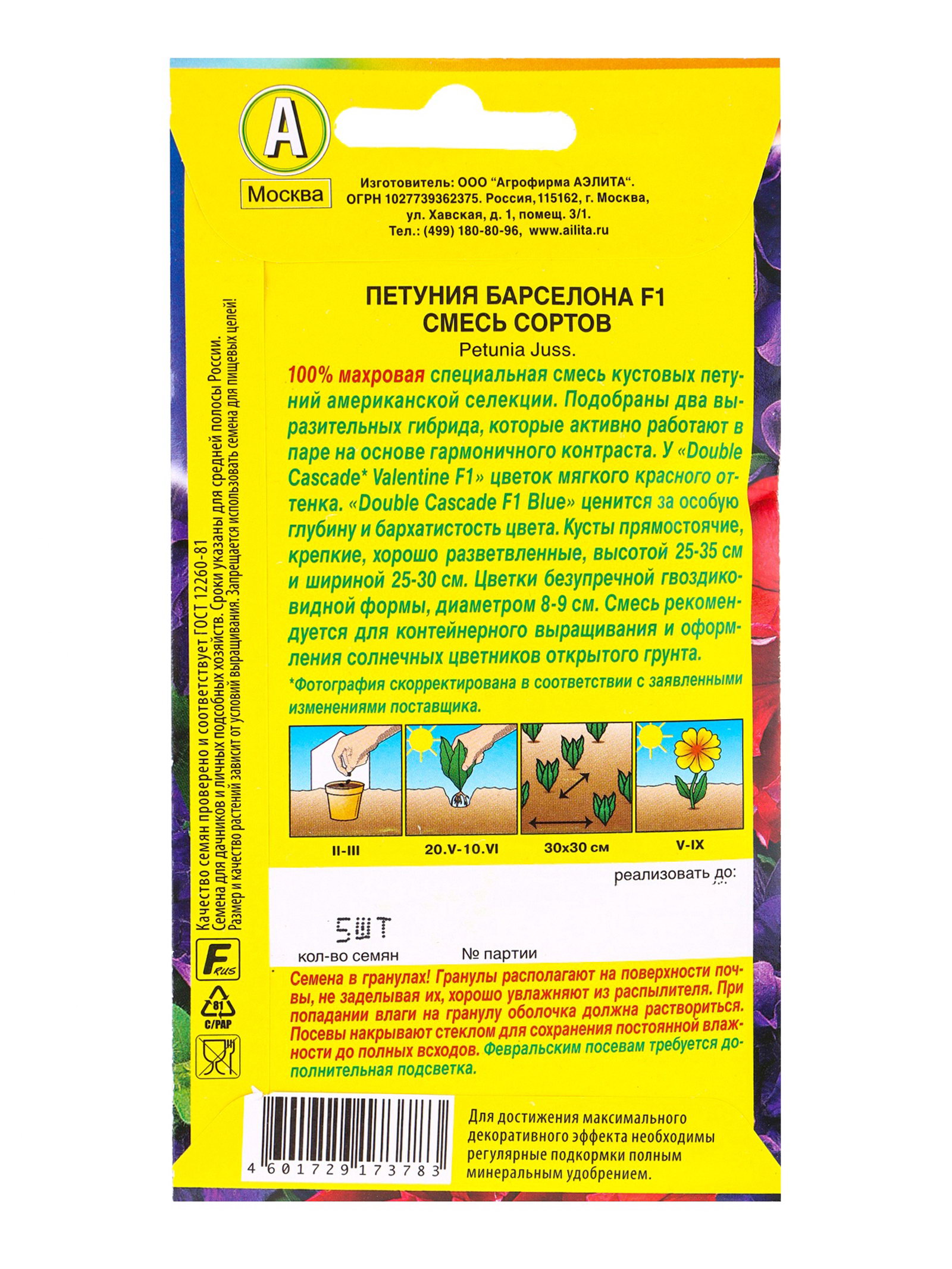 Семена цветов Петуния "Барселона", F1, крупноцветковая, махровая, смесь, драже, 5 шт., Агрофирма АЭЛИТА, Россия
