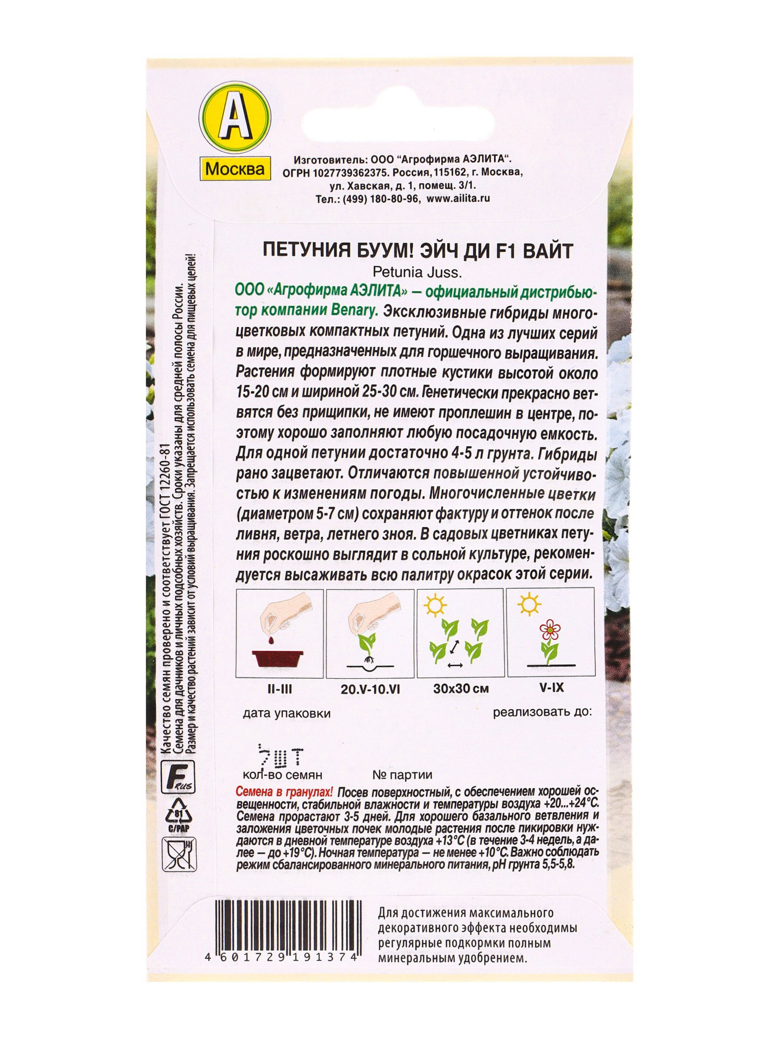 Семена цветов Петуния БУУМ! Эйч Ди F1 Вайт многоцветковая, Агрофирма АЭЛИТА, Германия