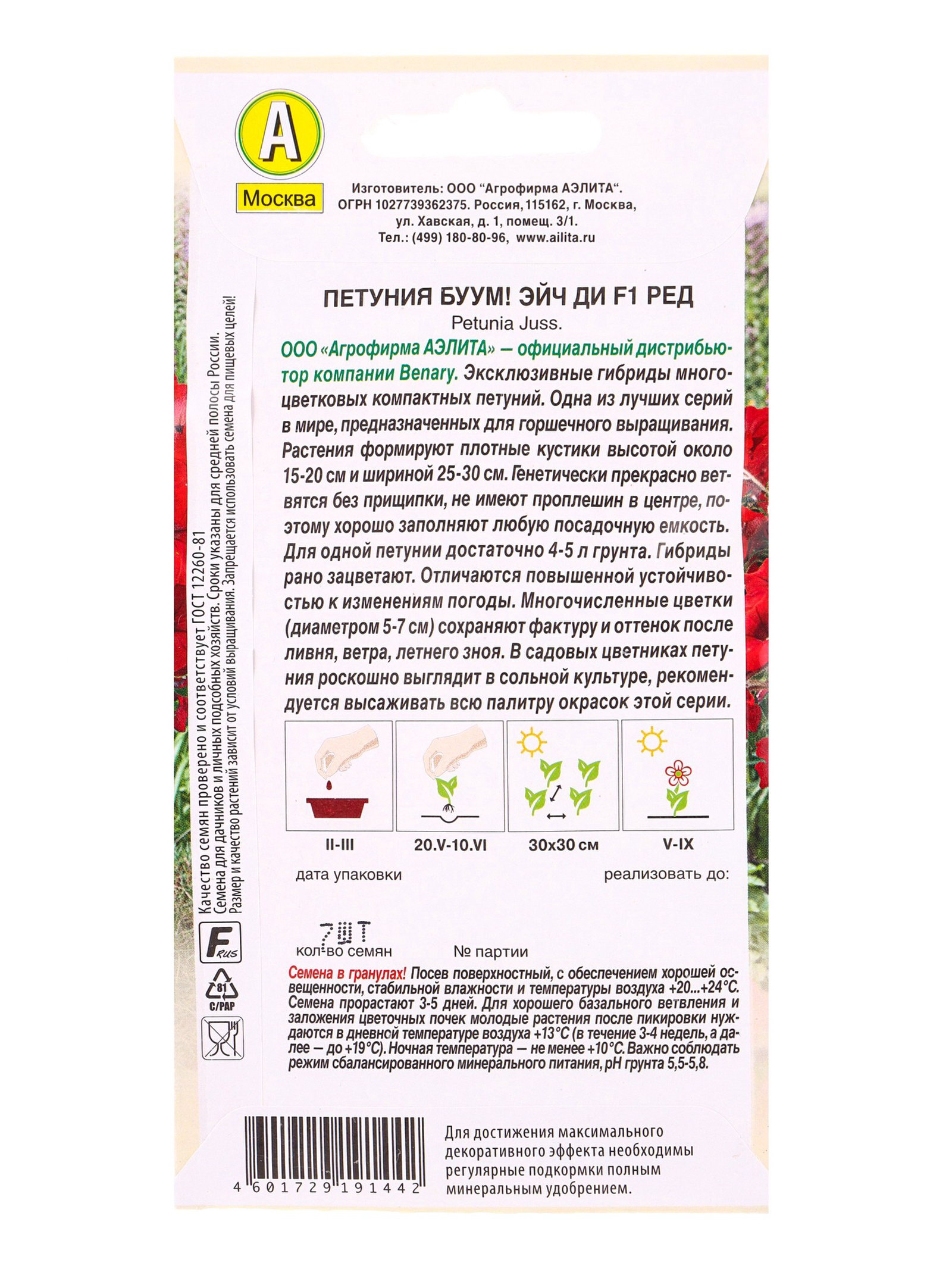 Семена цветов Петуния БУУМ! Эйч Ди F1 Ред многоцветковая, Агрофирма АЭЛИТА, Германия
