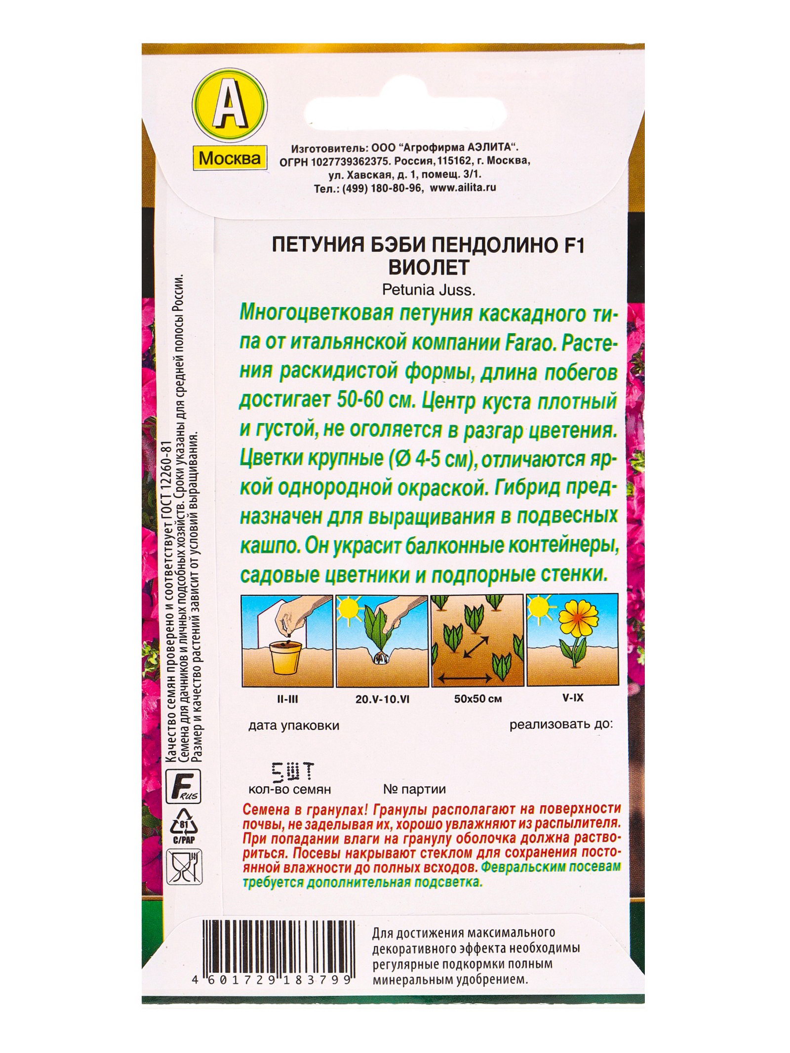 Семена цветов Петуния Бэби пендолино F1 виолет, Агрофирма АЭЛИТА, Италия