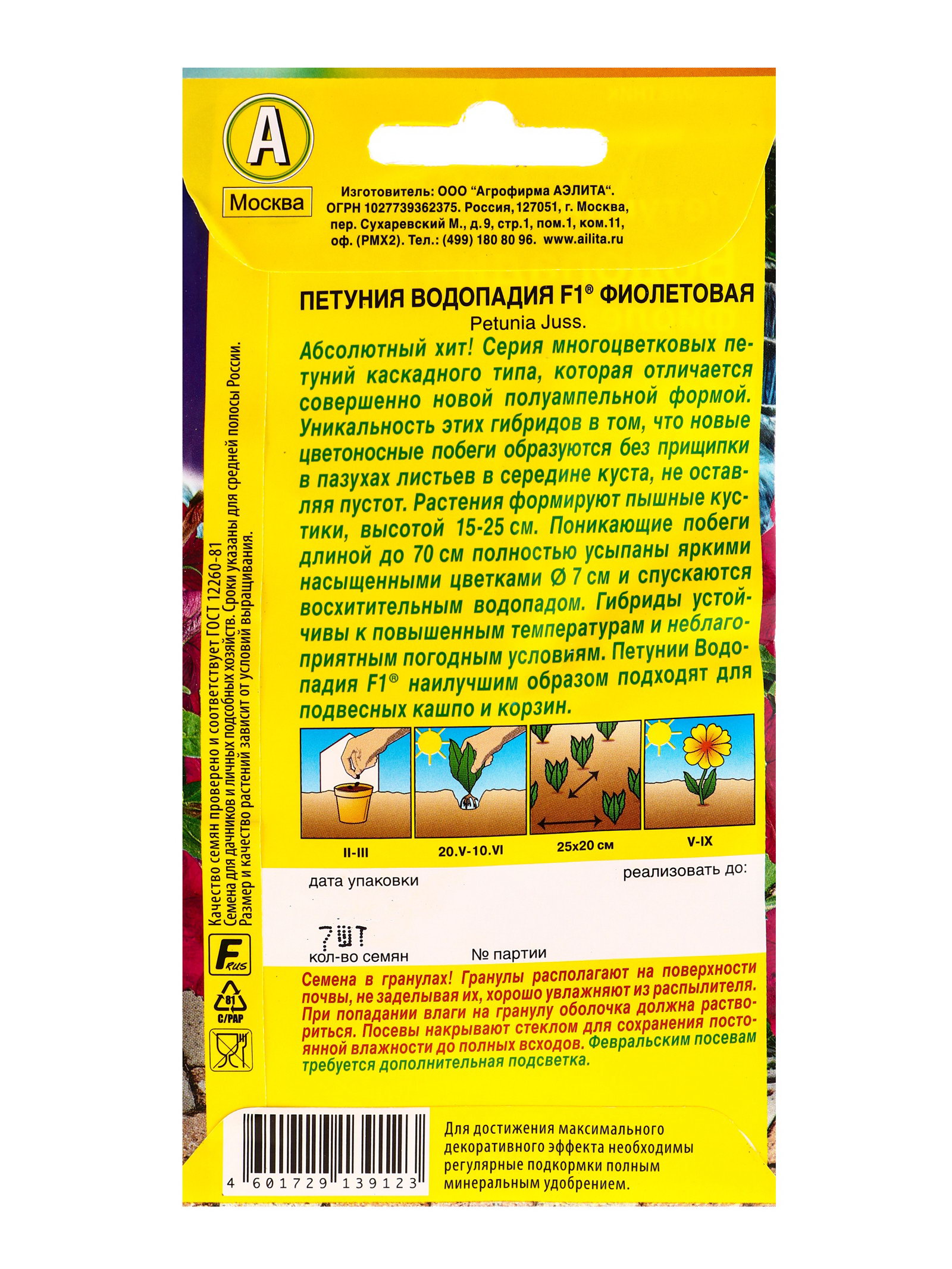 Семена цветов Петуния ВОДОПАДИЯ F1 фиолетовая, Агрофирма АЭЛИТА, Италия