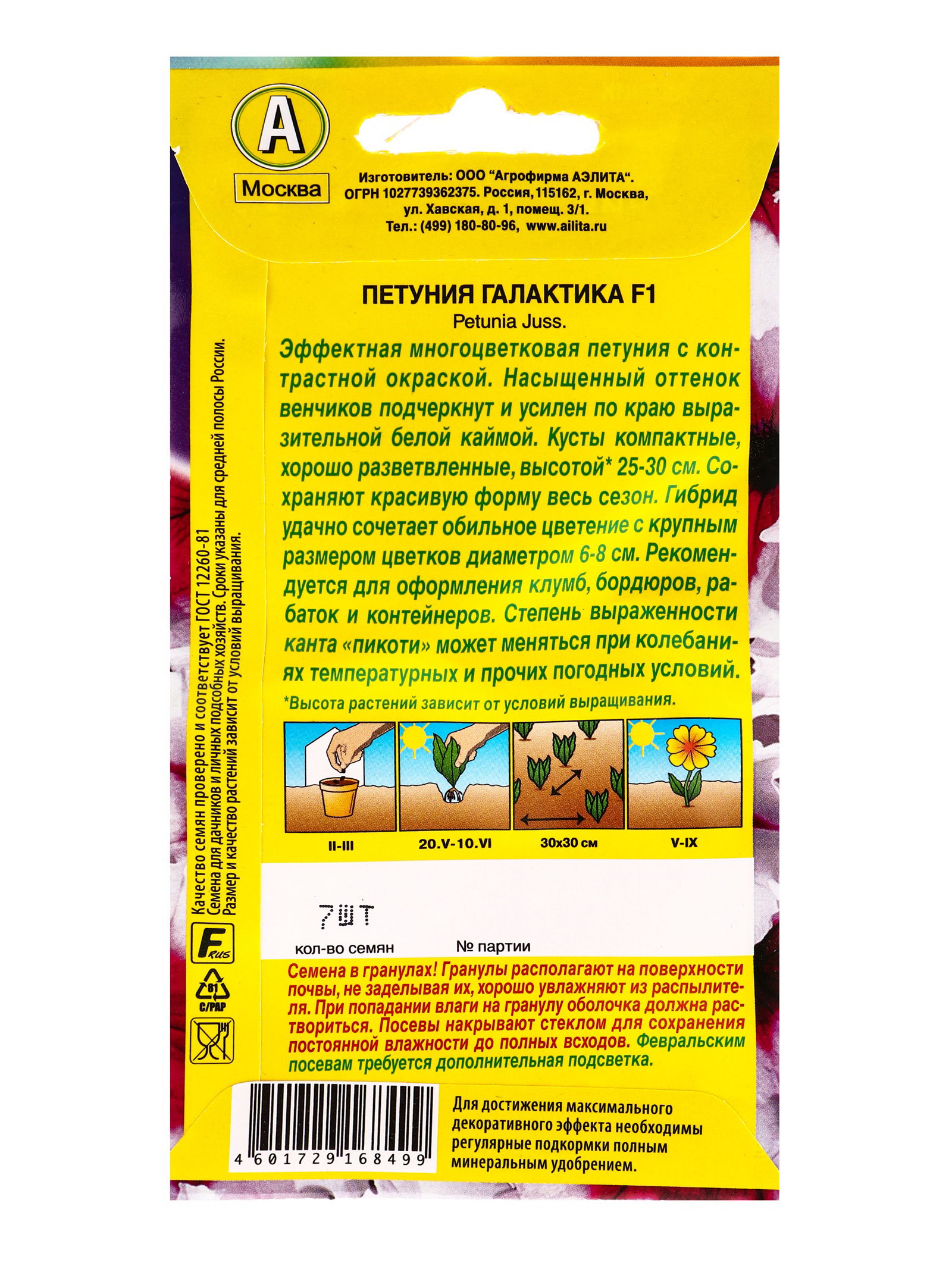 Семена цветов Петуния Галактика F1 обильноцветущая, Ц/П,7 шт., Агрофирма АЭЛИТА, Чехия