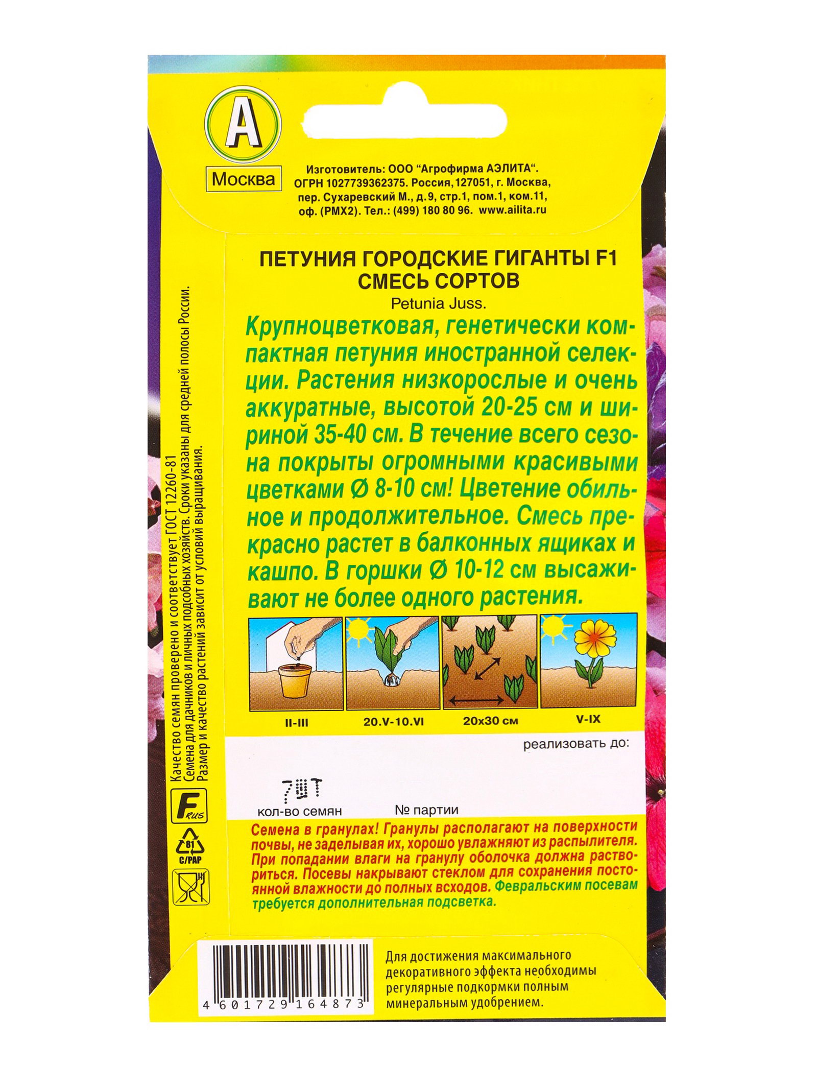 Семена цветов Петуния Городские гиганты F1, смесь сортов, Агрофирма АЭЛИТА, Индонезия