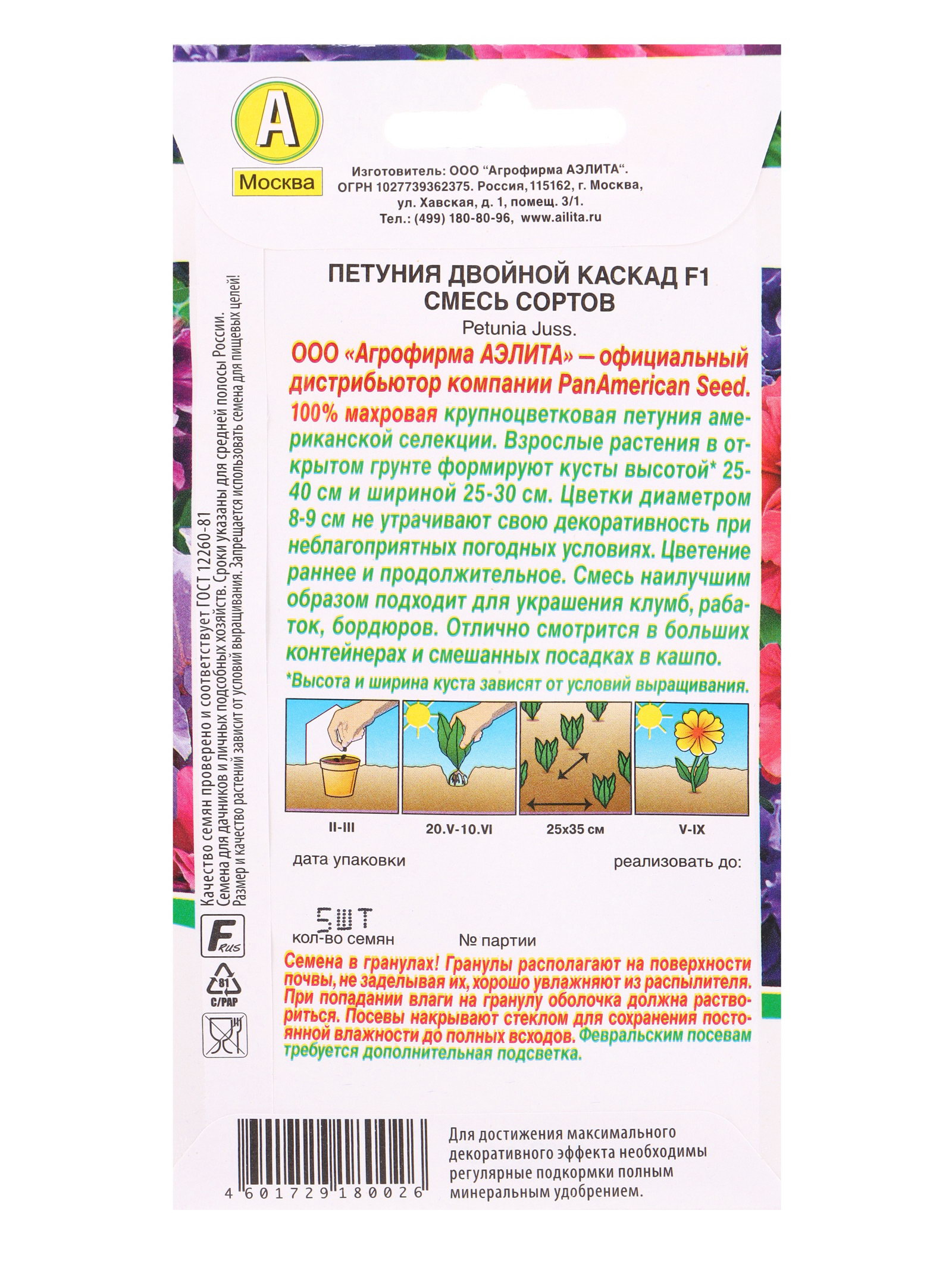 Семена цветов Петуния Двойной каскад F1 махровая, смесь сортов, Агрофирма АЭЛИТА, Коста-Рика