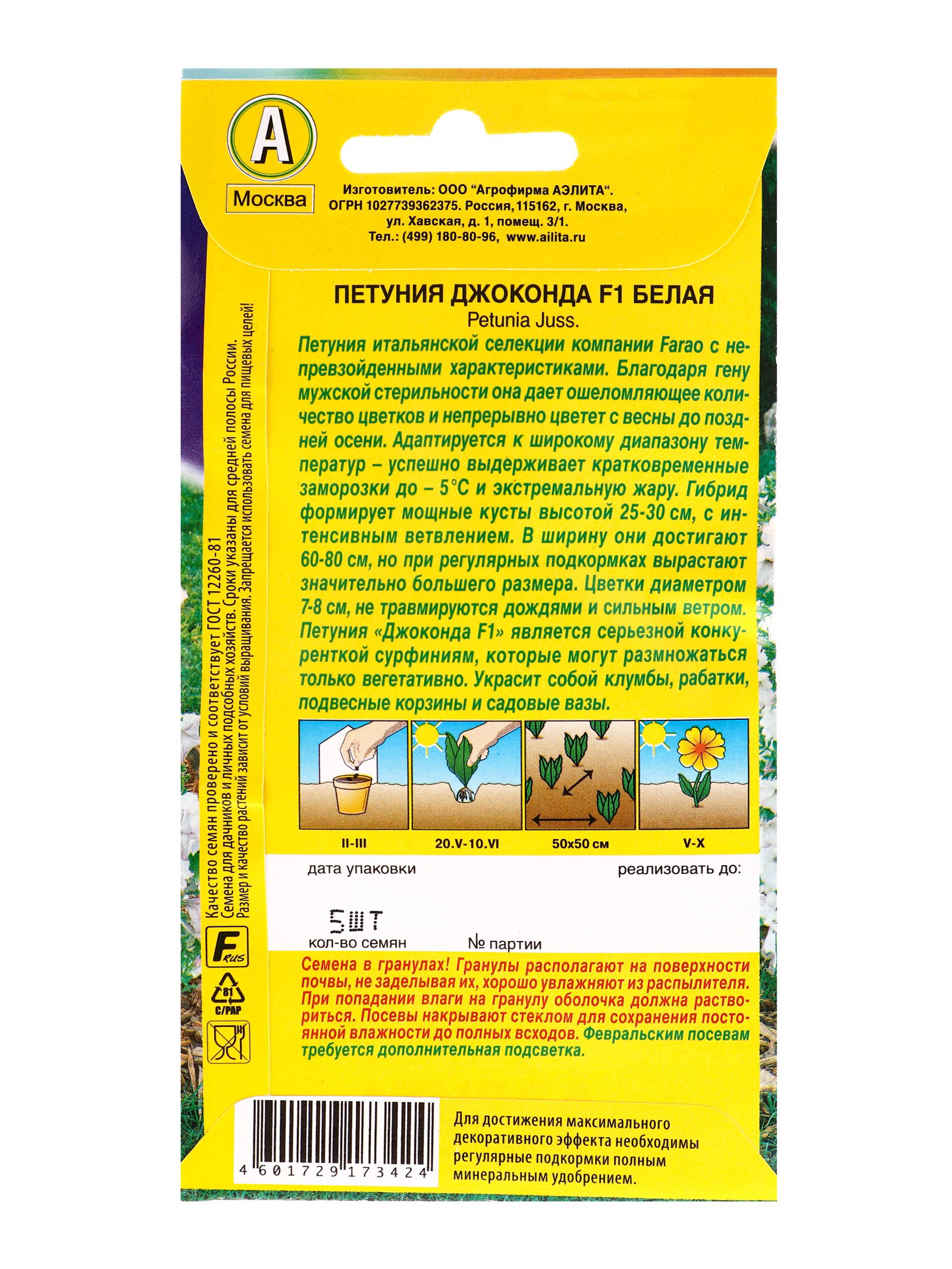 Семена цветов Петуния Джоконда F1 белая, Агрофирма АЭЛИТА, Италия